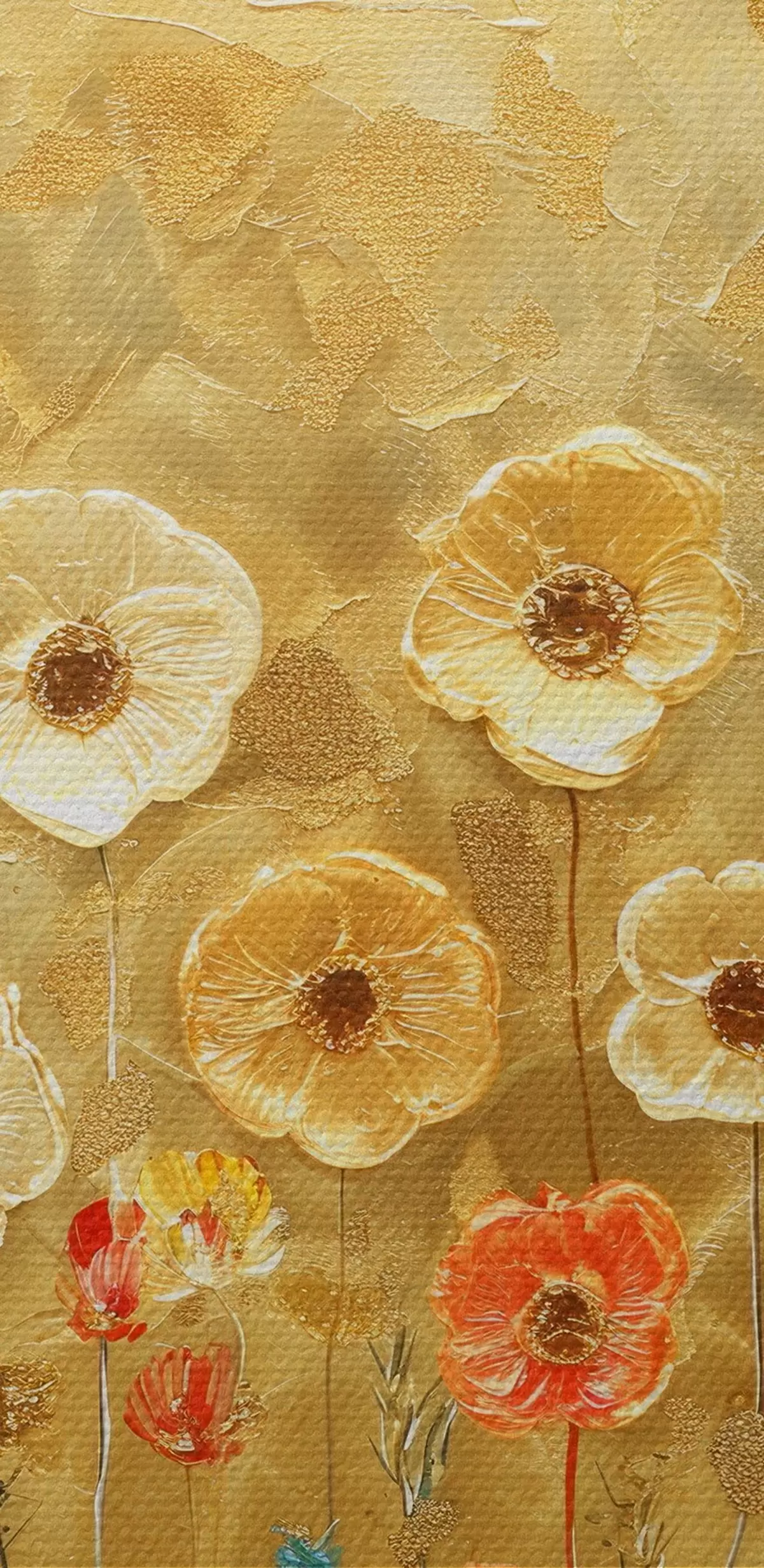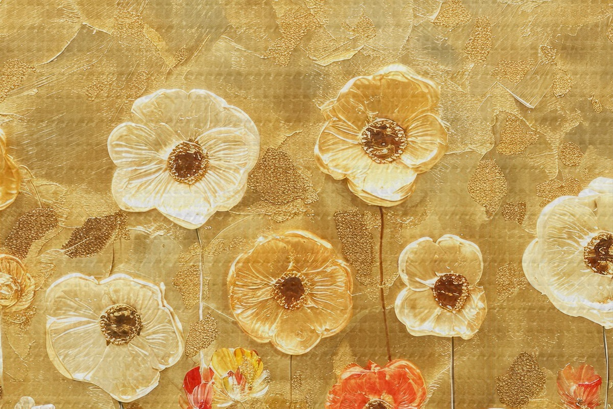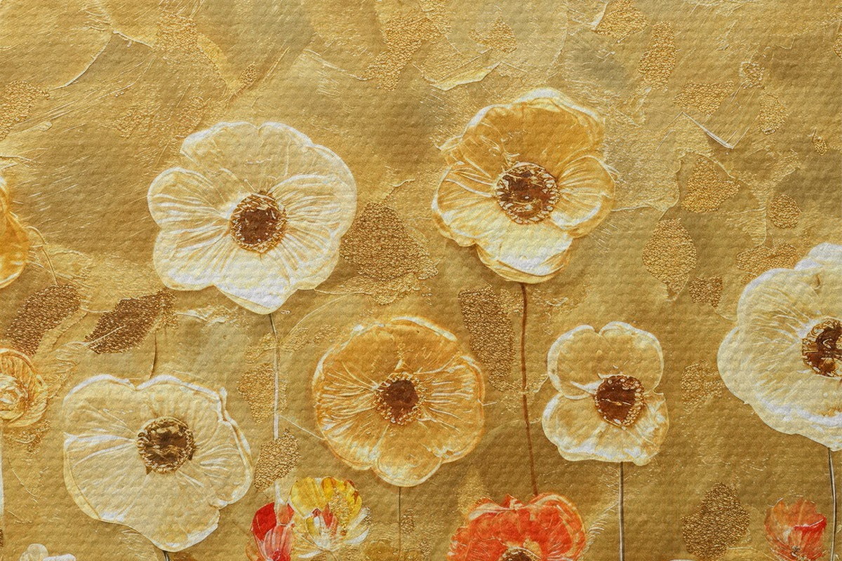 Foto prado estilo klimt: delicadas flores pastel con textura fundida Nr r39464