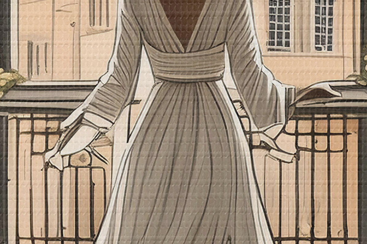 Foto silueta de una chica con un vestido blanco cerca de una ventana grande Nr r39480
