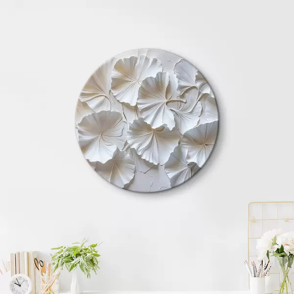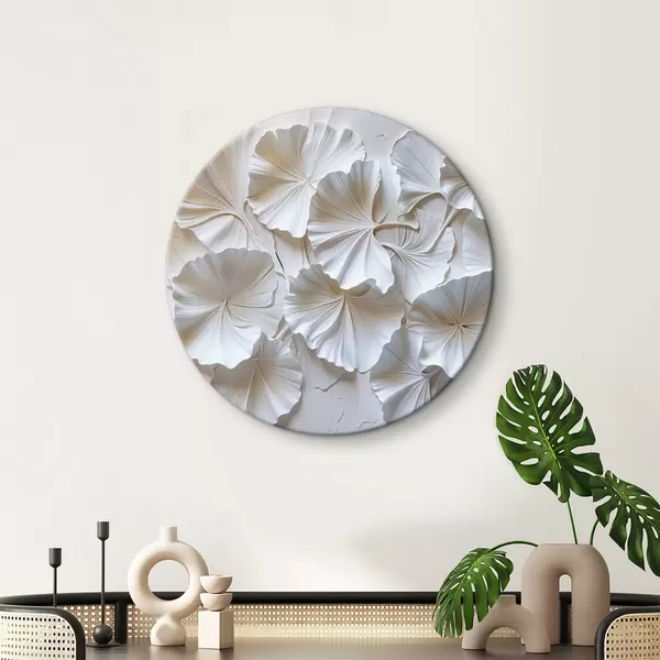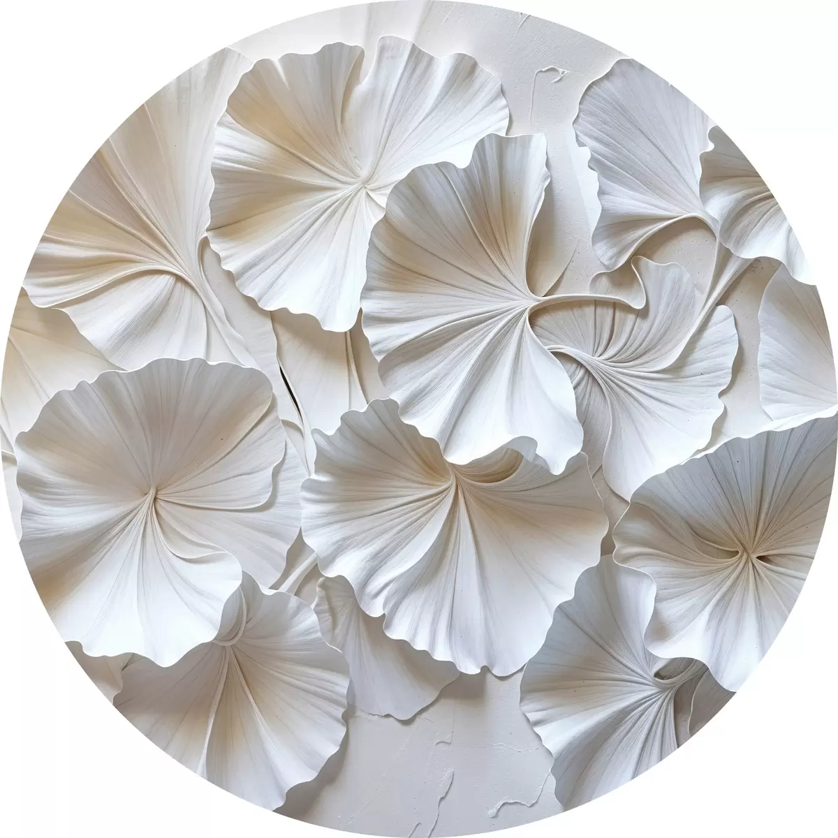 Cuadros redondos Delicadas flores blancas dispuestas en un patrón natural y orgánico sobre un fondo claro r39510