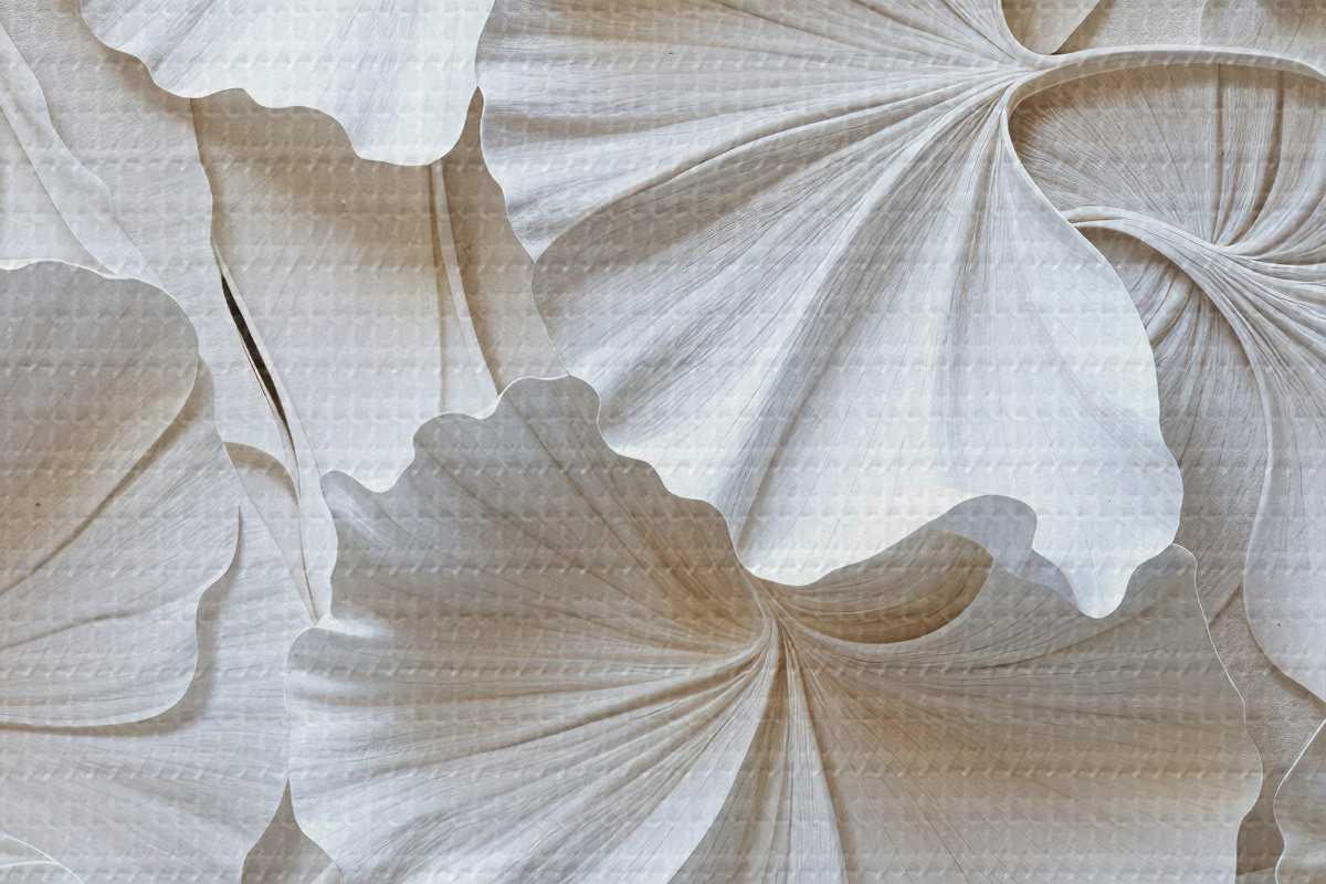 Foto Delicadas flores blancas dispuestas en un patrón natural y orgánico sobre un fondo claro Nr r39510