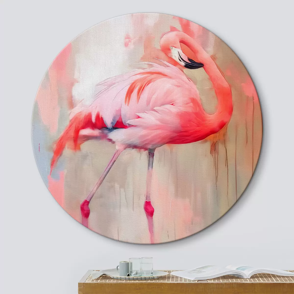 Cuadros redondos Pájaro flamenco rosado r39536