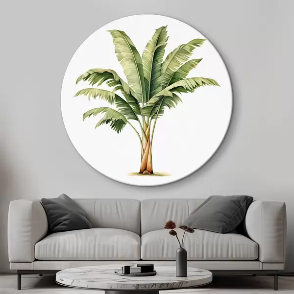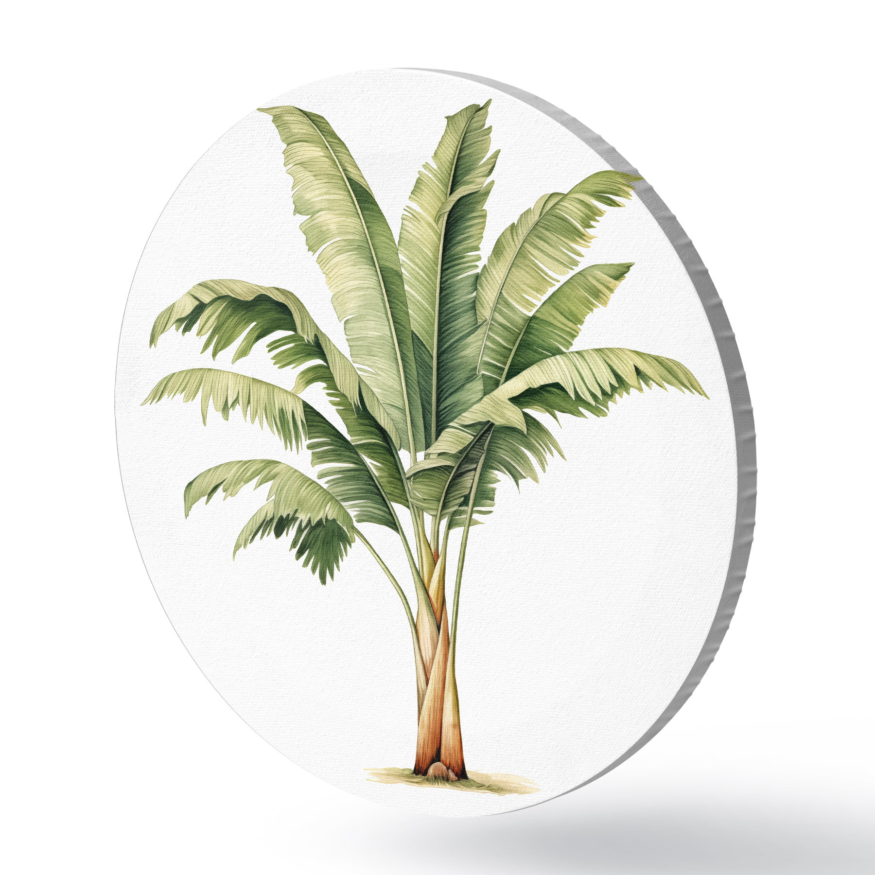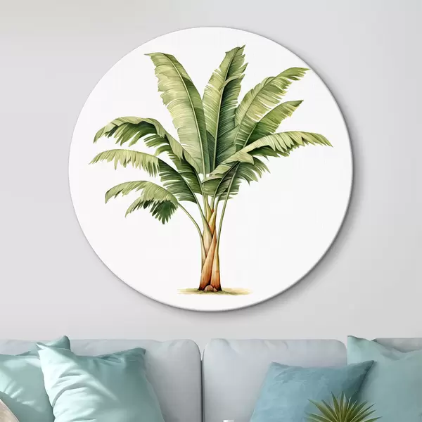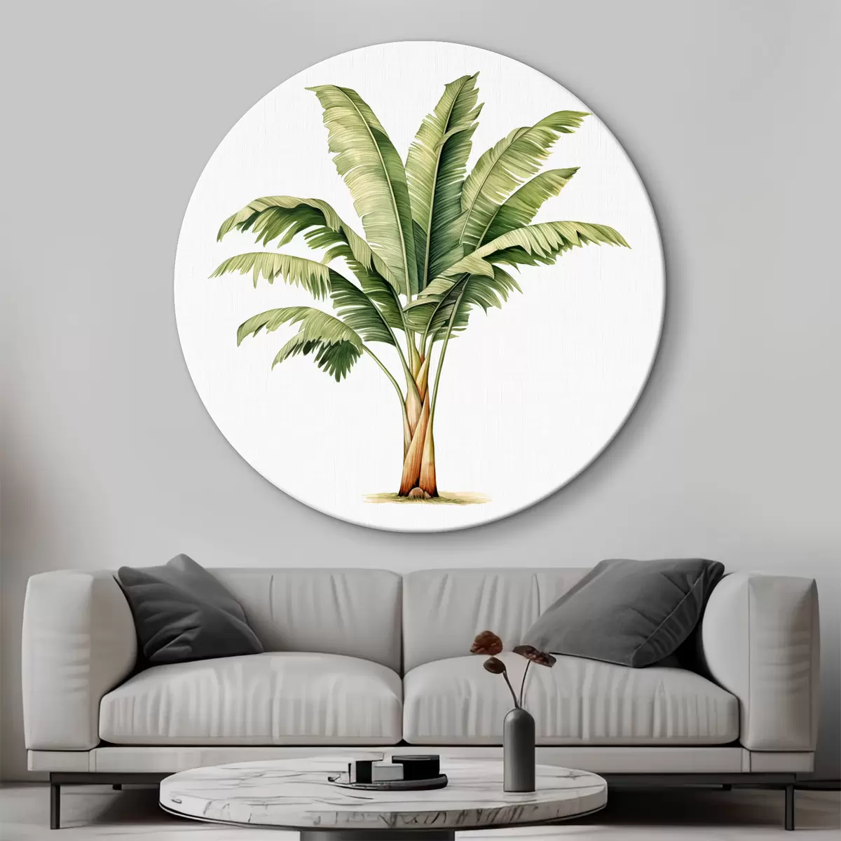 Cuadros redondos Ilustración minimalista acuarela de palmera de plátano r39562