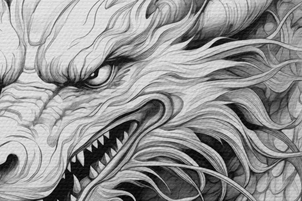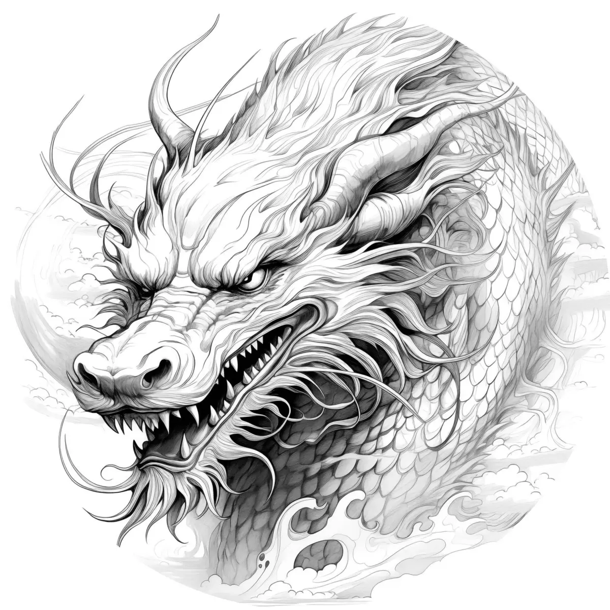 Foto Dibujo lineal de dragón de estilo chino monocromo Nr r39563