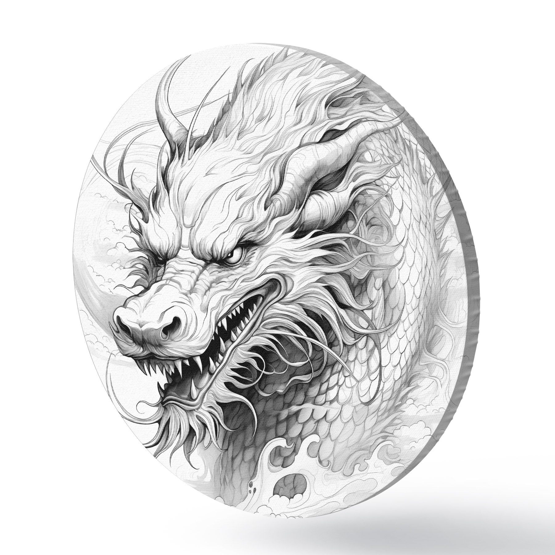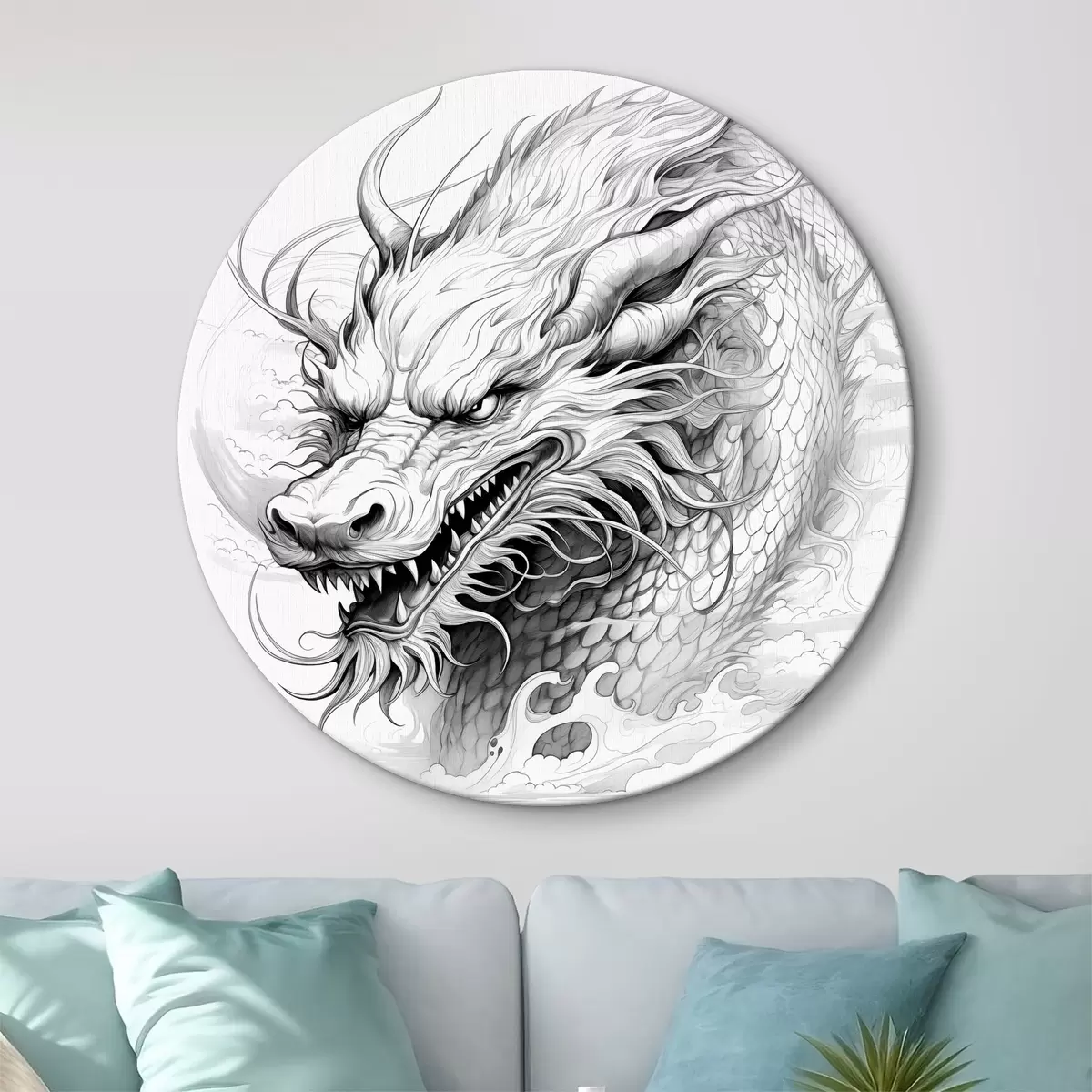 Cuadros redondos Dibujo lineal de dragón de estilo chino monocromo r39563