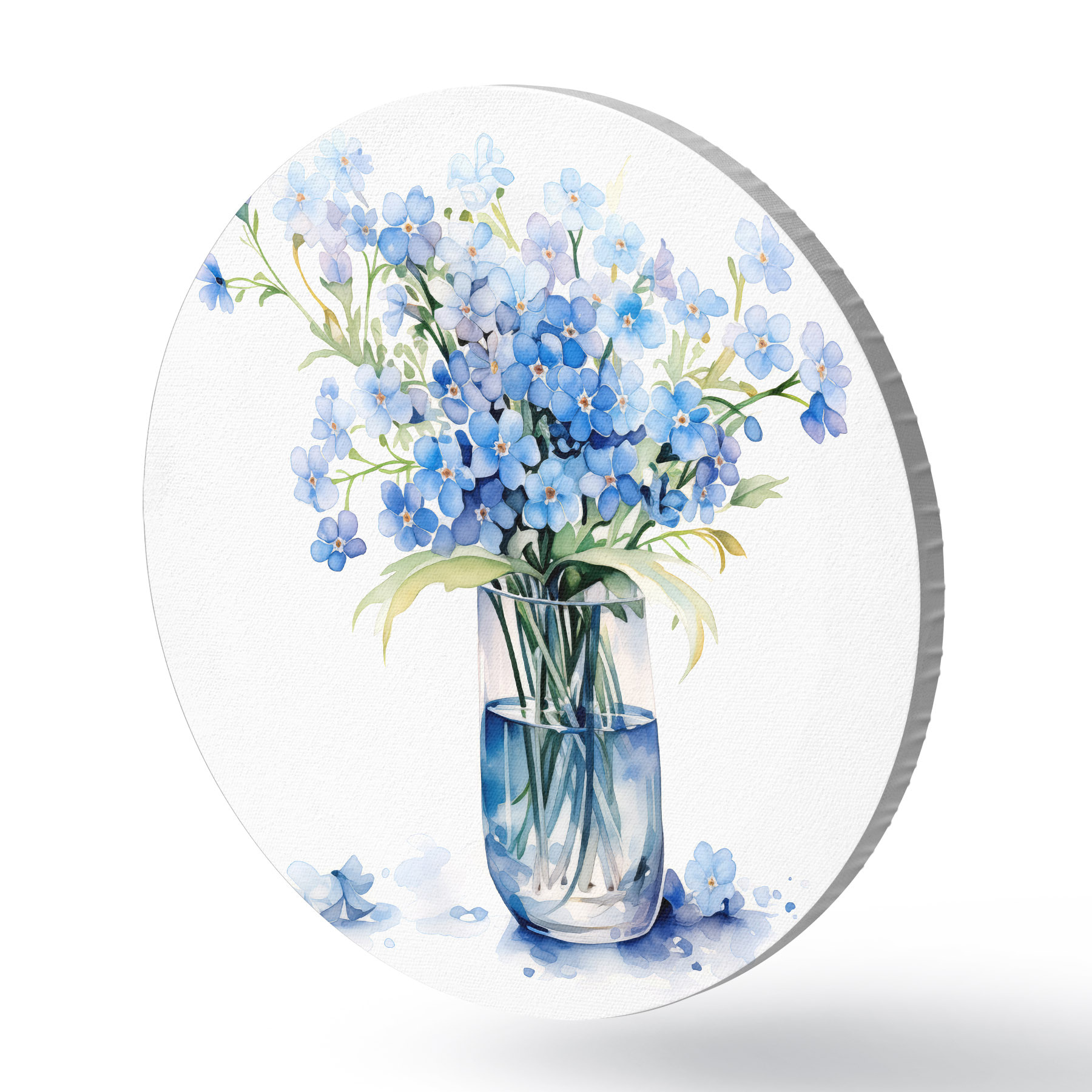 Cuadros redondos Ramo de flores silvestres azules en un jarrón transparente acuarela r39564