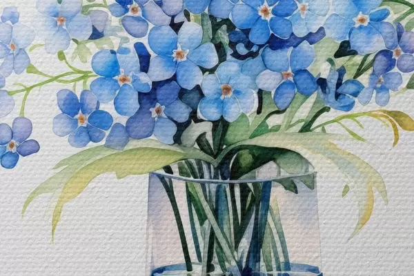 Foto Ramo de flores silvestres azules en un jarrón transparente acuarela Nr r39564