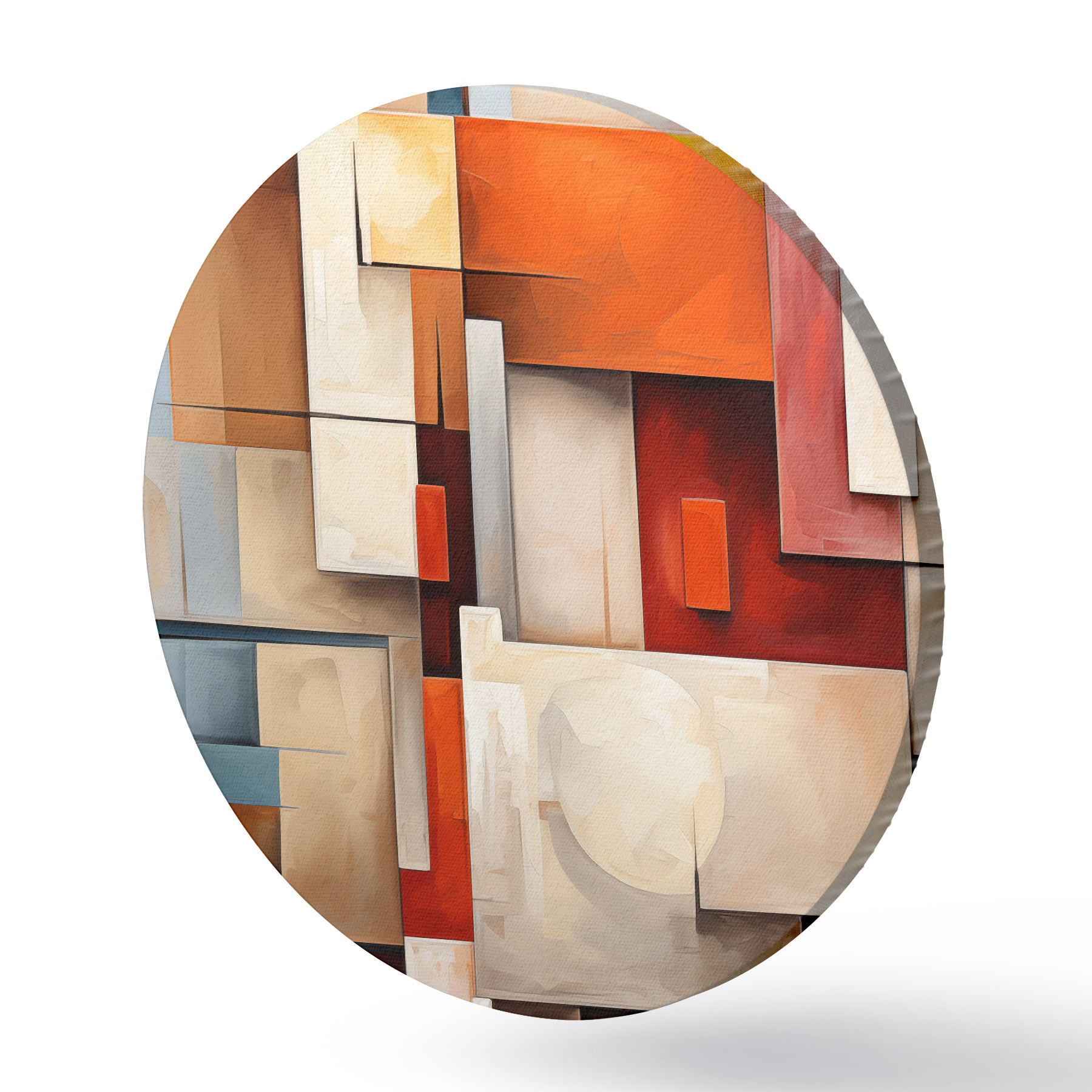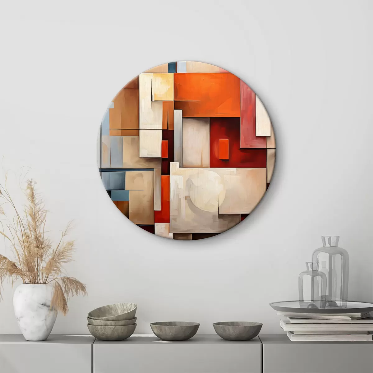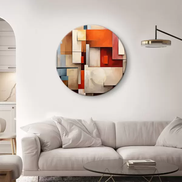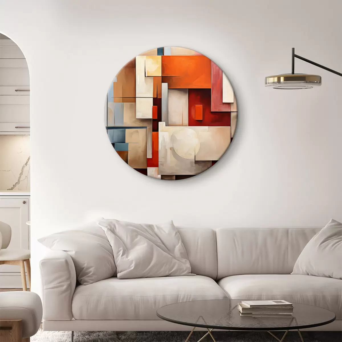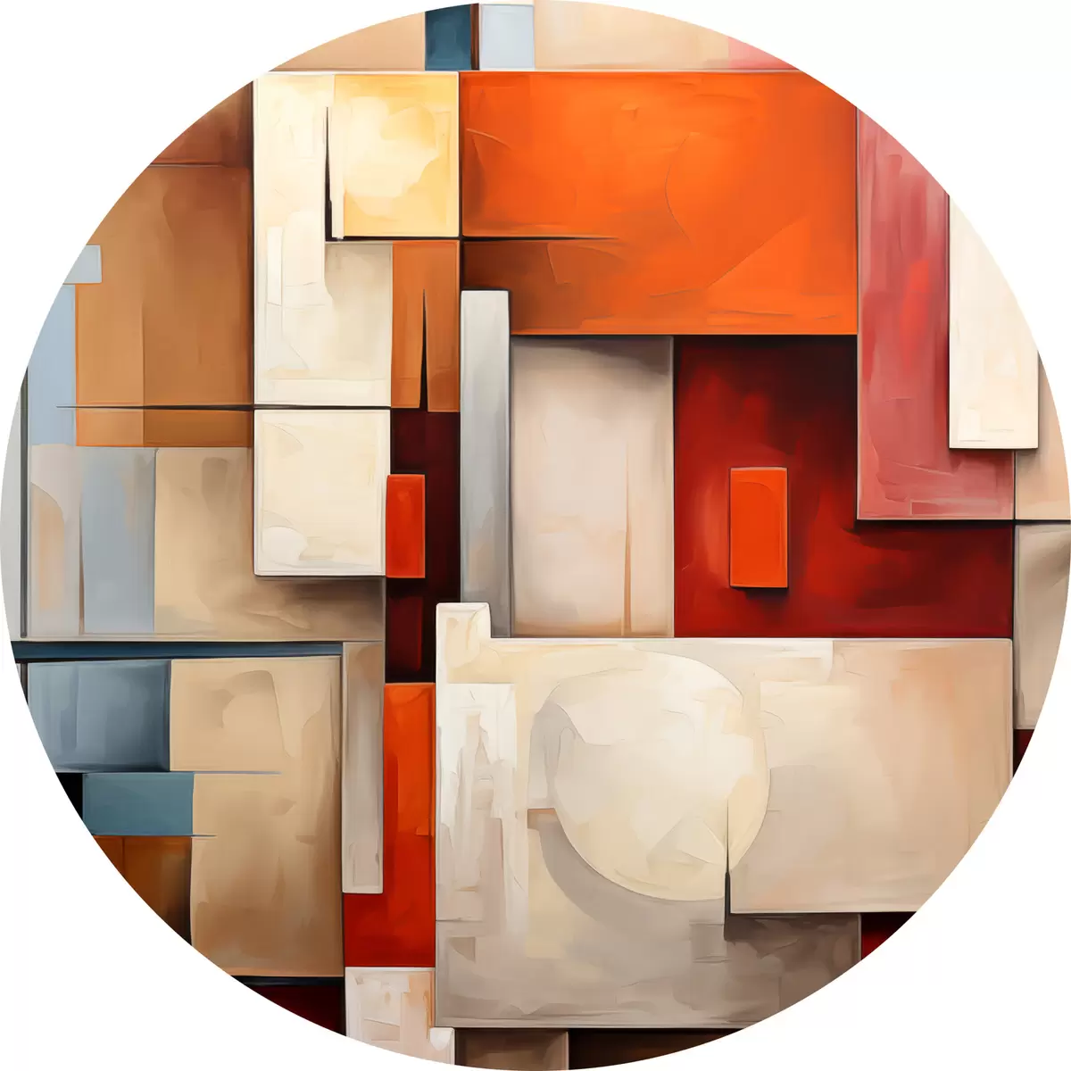 Cuadros redondos Abstracción en estilo cubismo, pintura al óleo, colores rojo, azul y blanco r39571