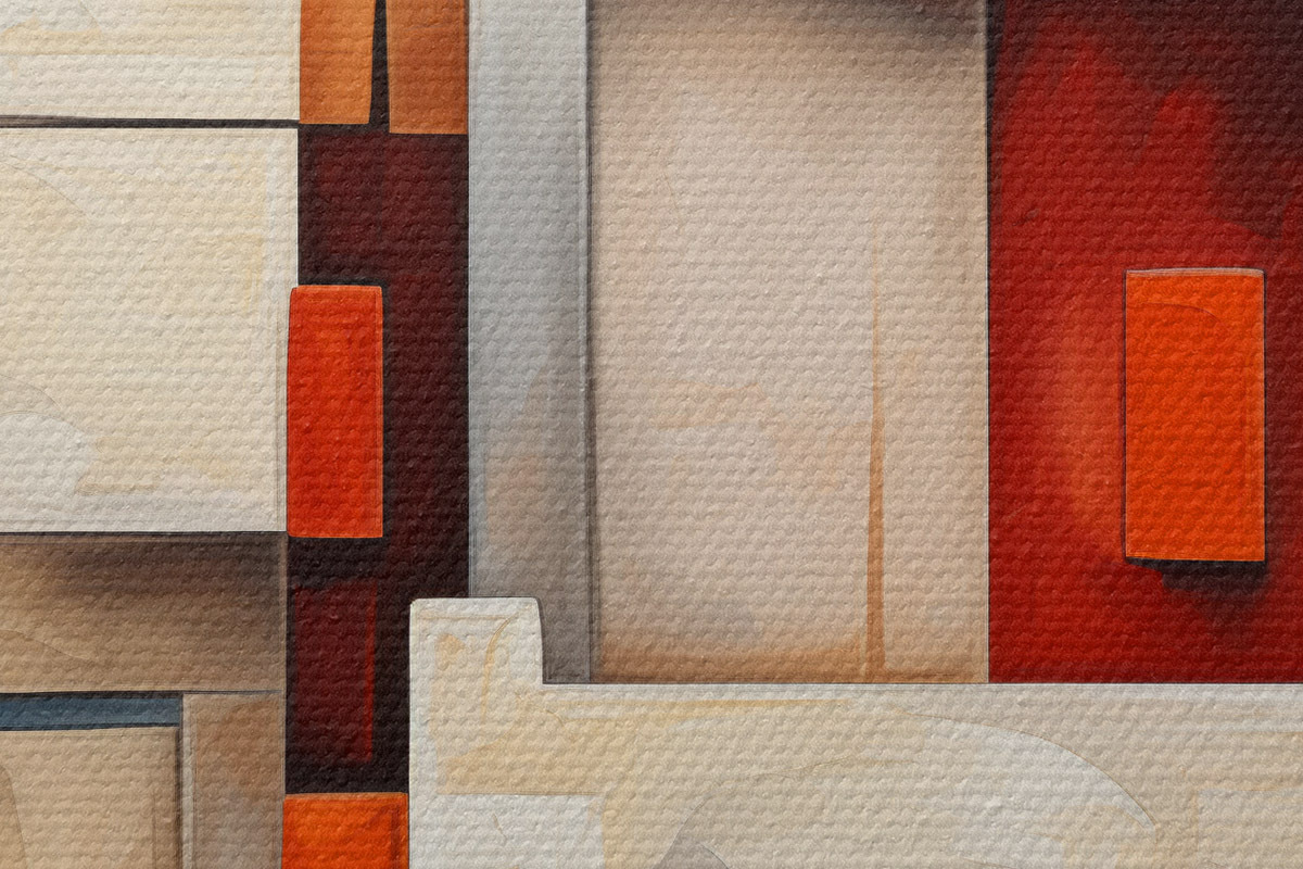 Foto Abstracción en estilo cubismo, pintura al óleo, colores rojo, azul y blanco Nr r39571