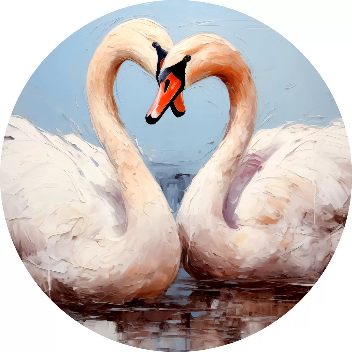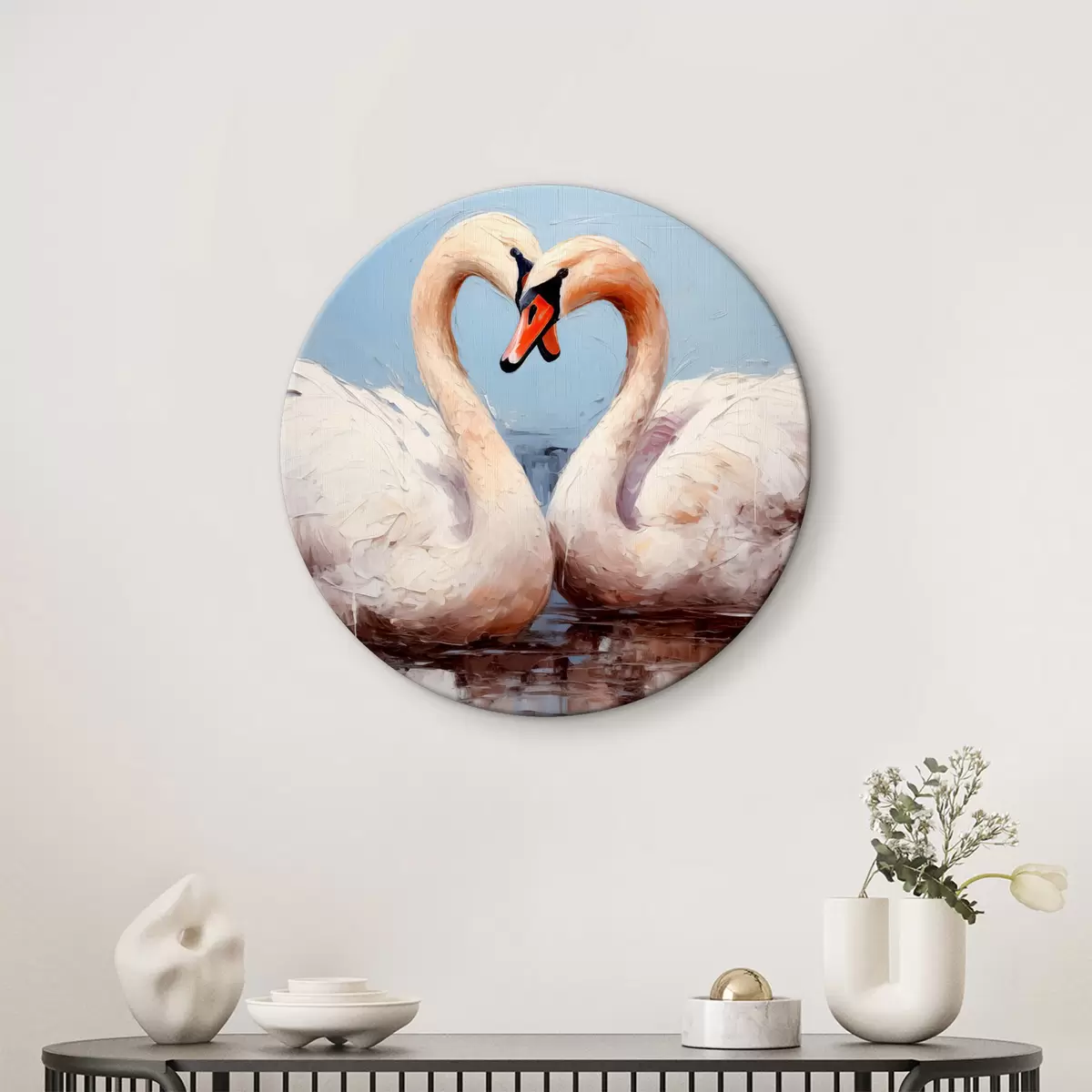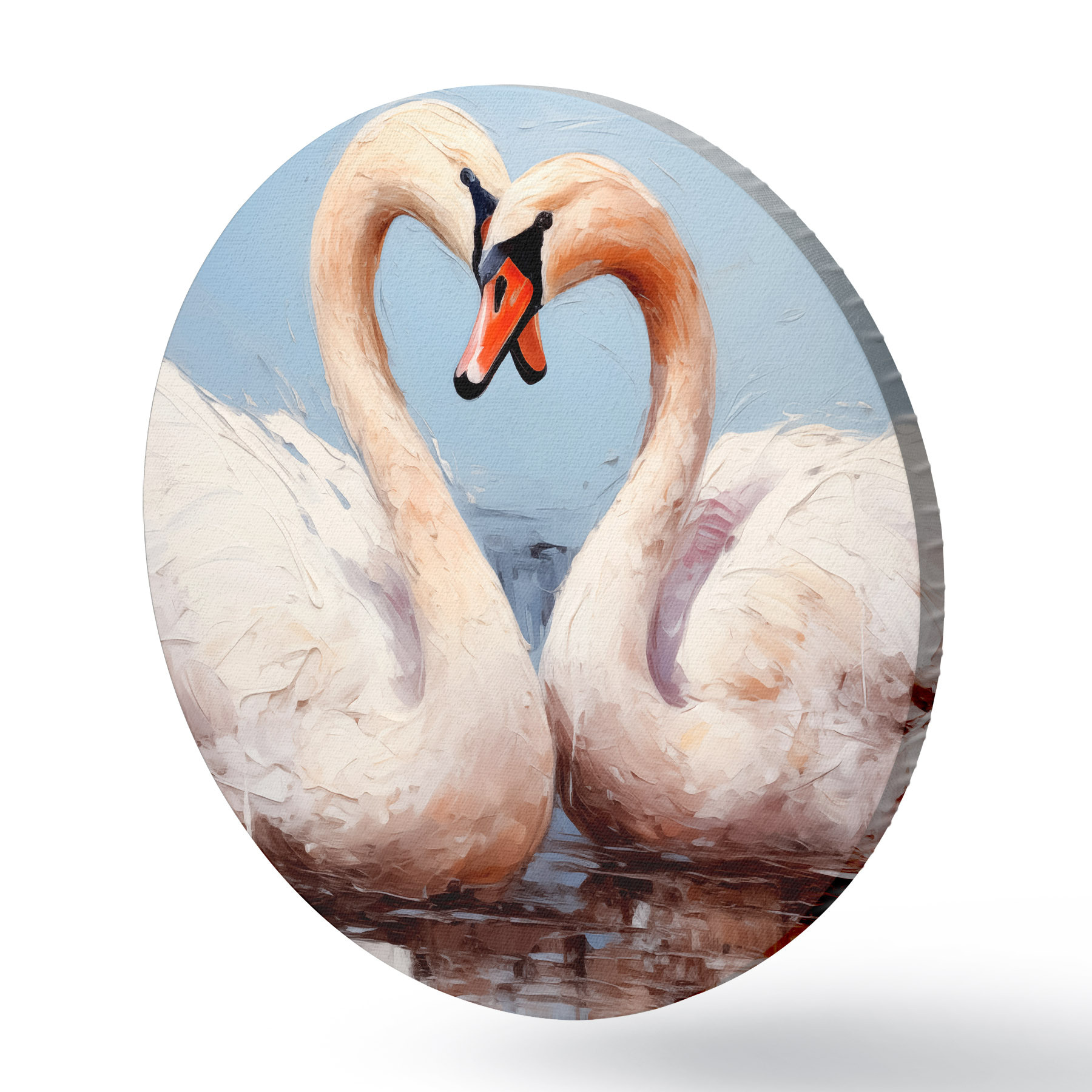 Cuadros redondos Par de cisnes blancos en un estanque, pintura al óleo r39572