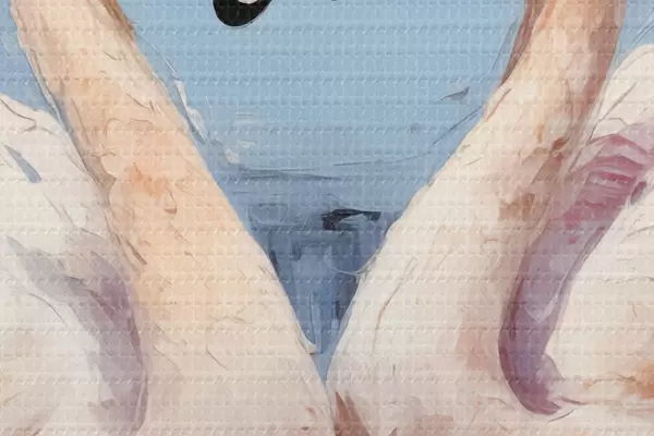 Foto Par de cisnes blancos en un estanque, pintura al óleo Nr r39572