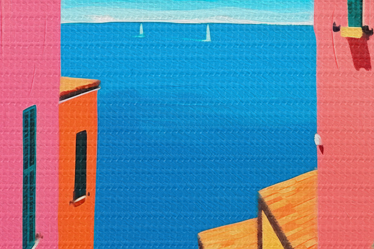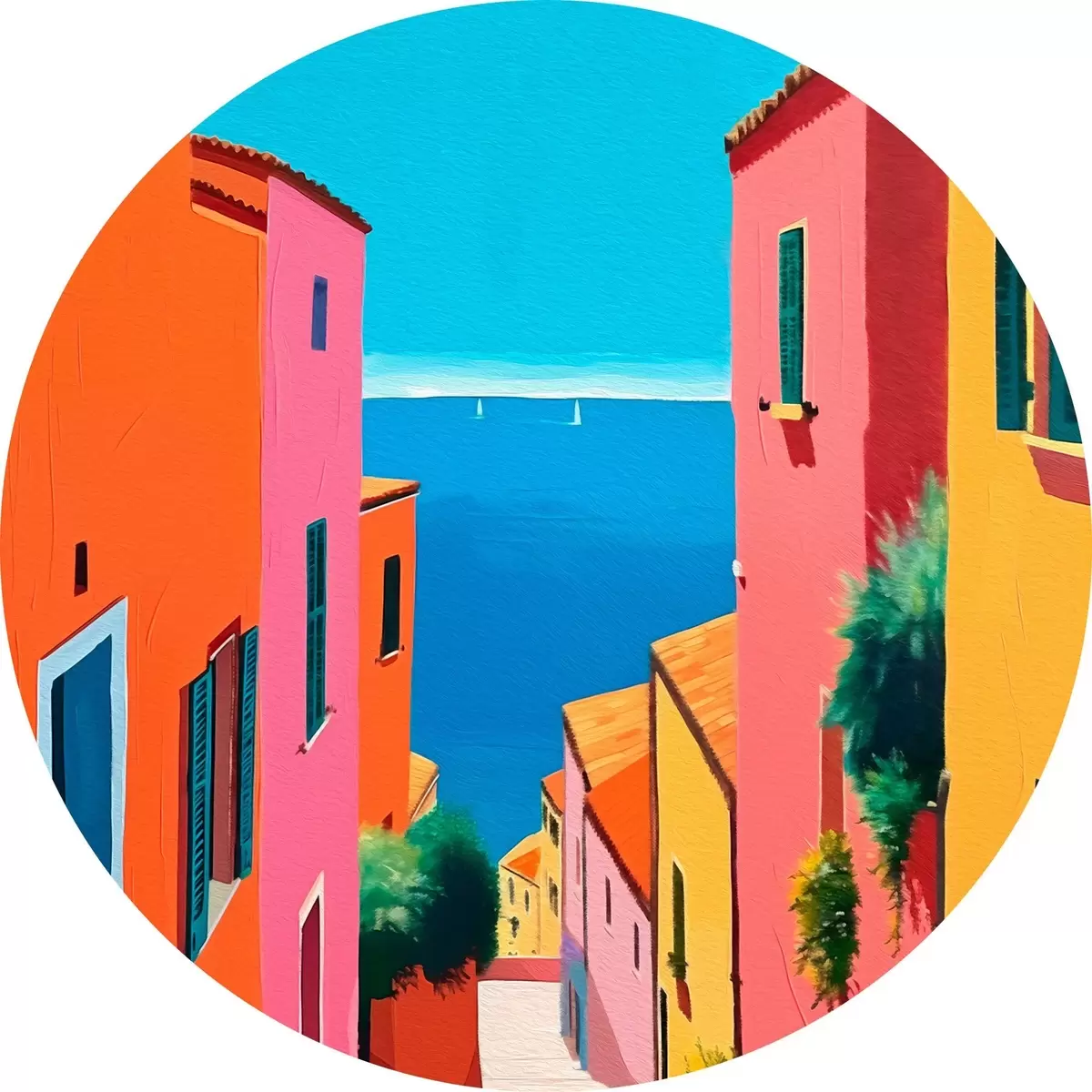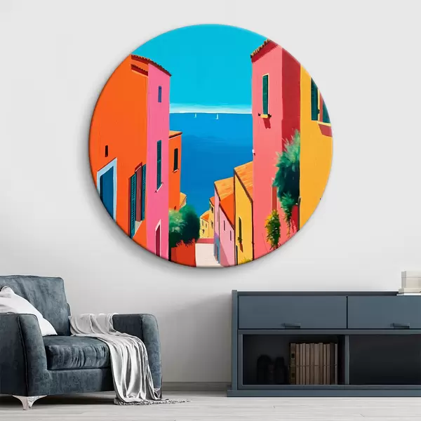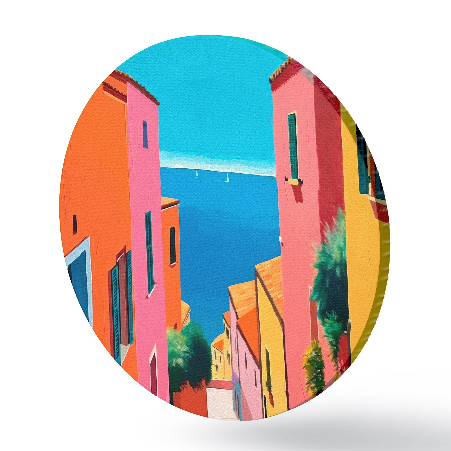 Cuadros redondos Vista al mar y calle luminosa r39579