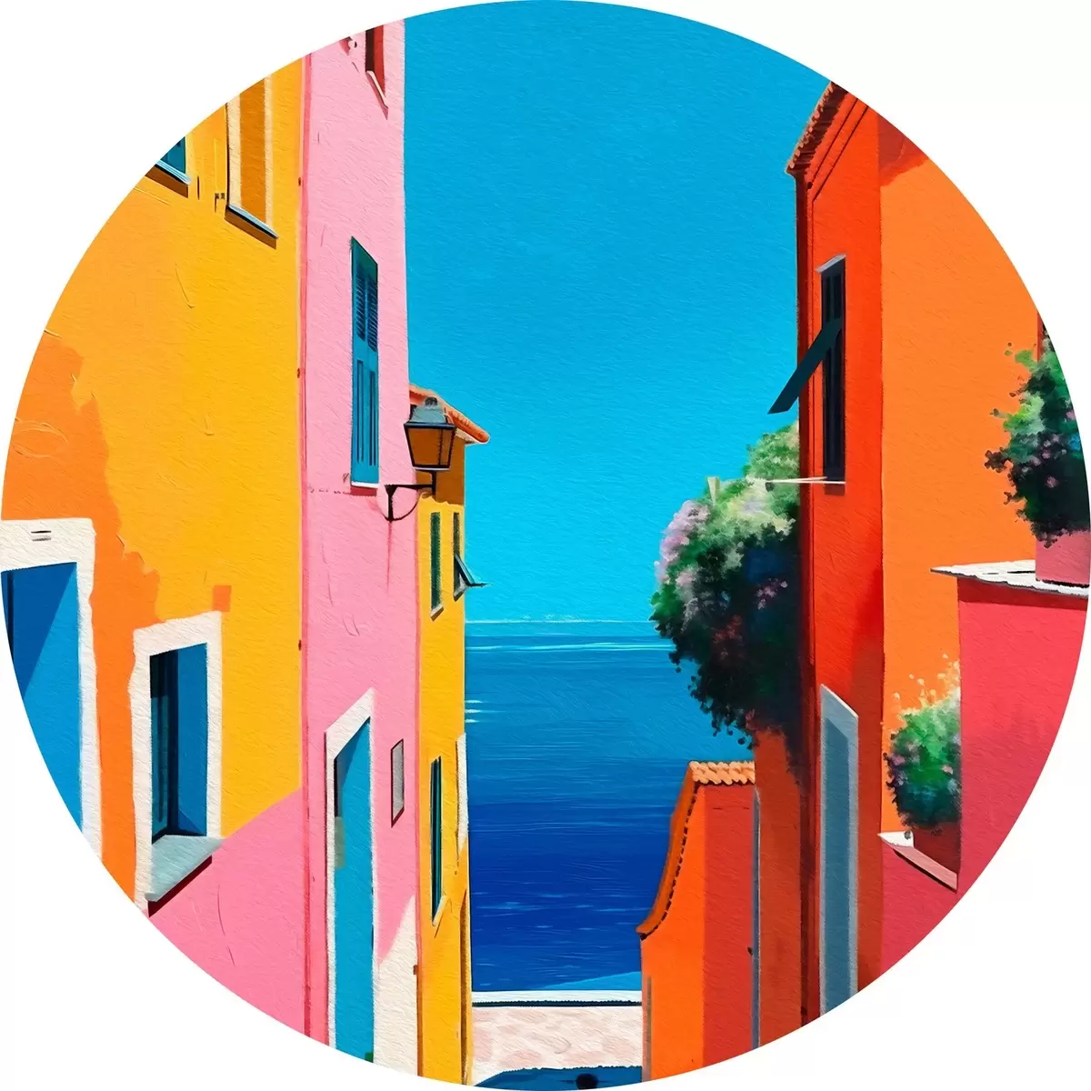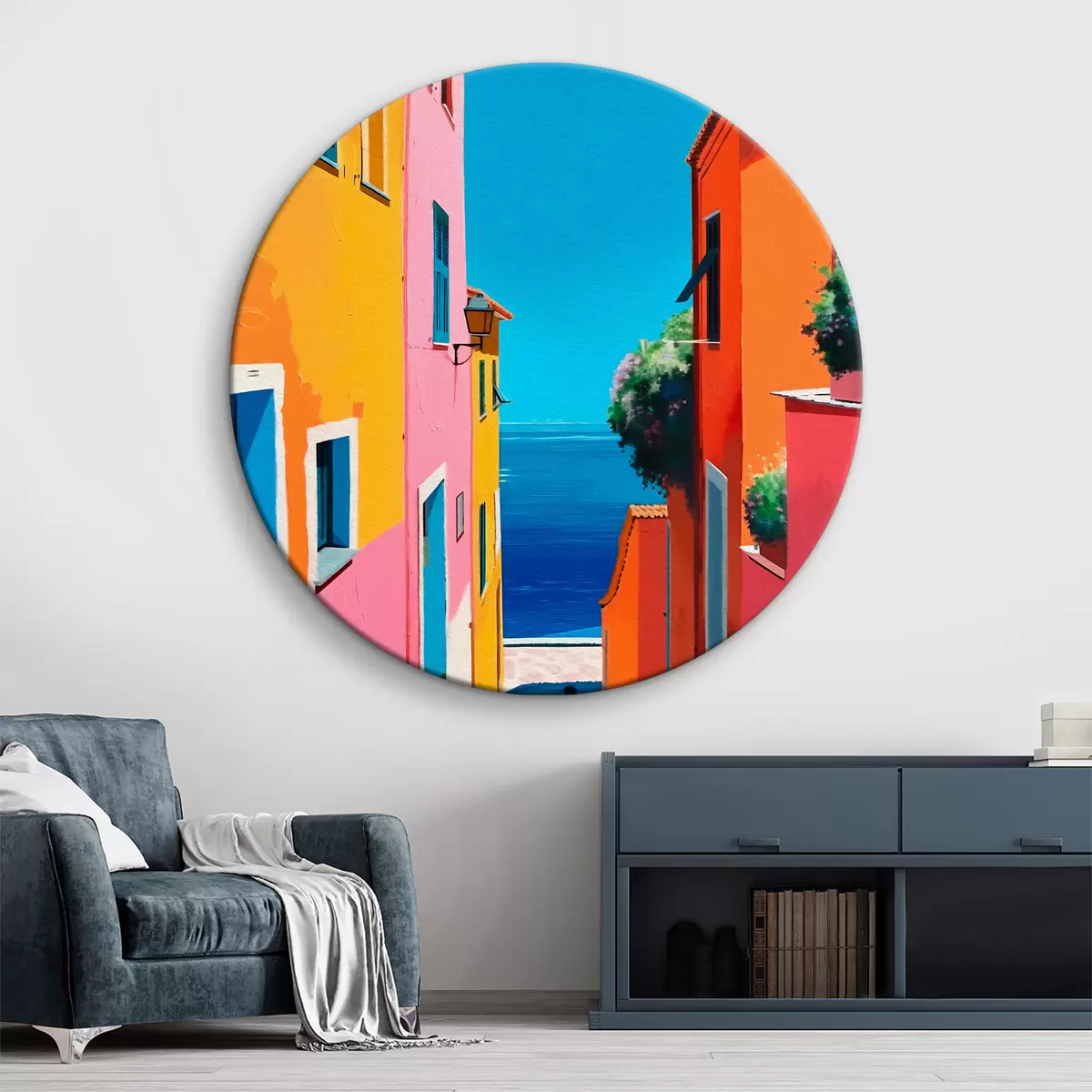 Cuadros redondos Vista al mar y calle luminosa r39582