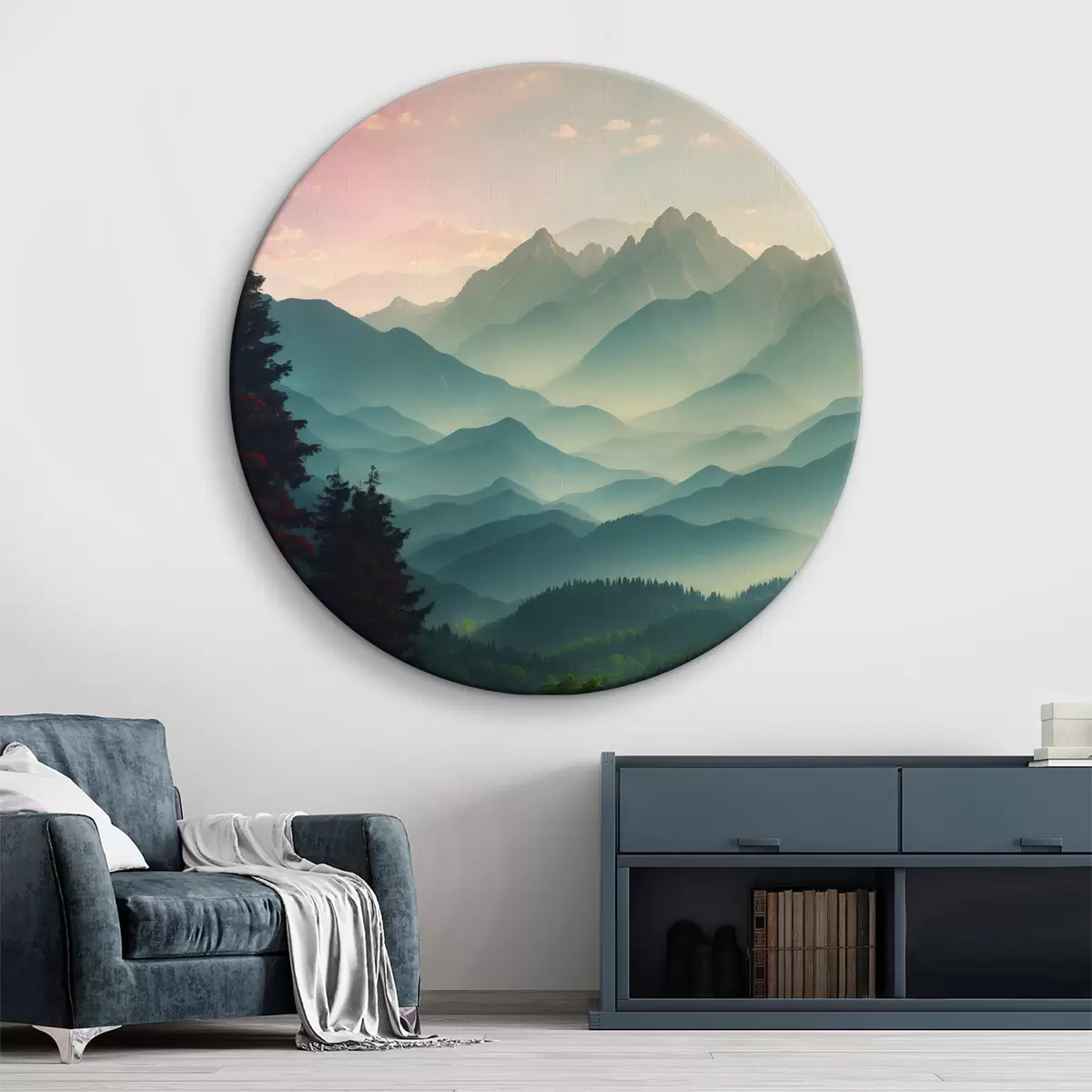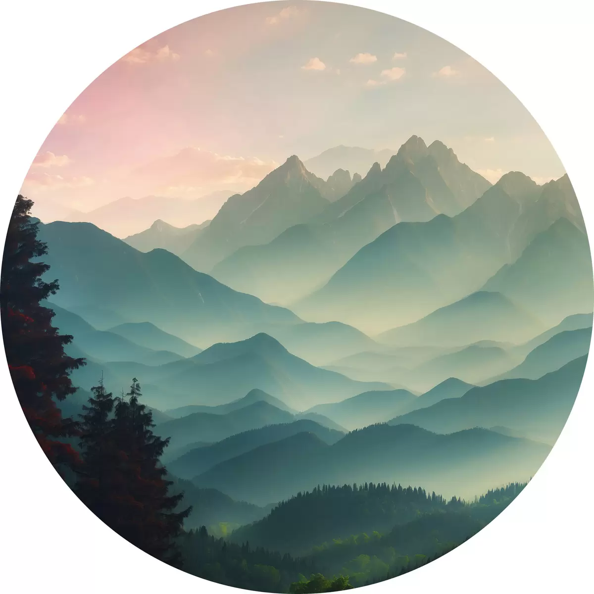 Cuadros redondos Vista a la montaña al amanecer r39607