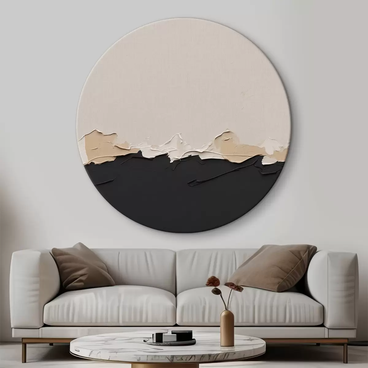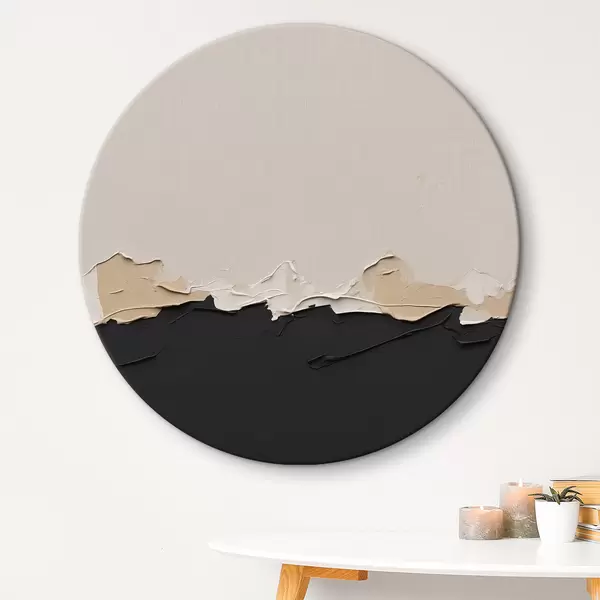 Cuadros redondos Cuadro abstracto con colores blanco y negro r39609