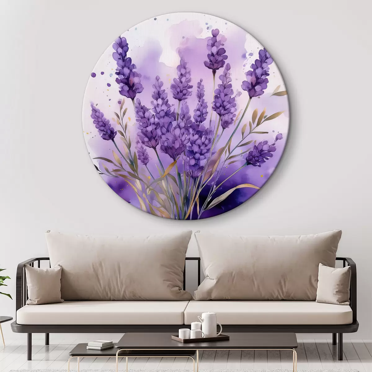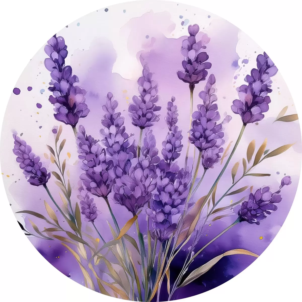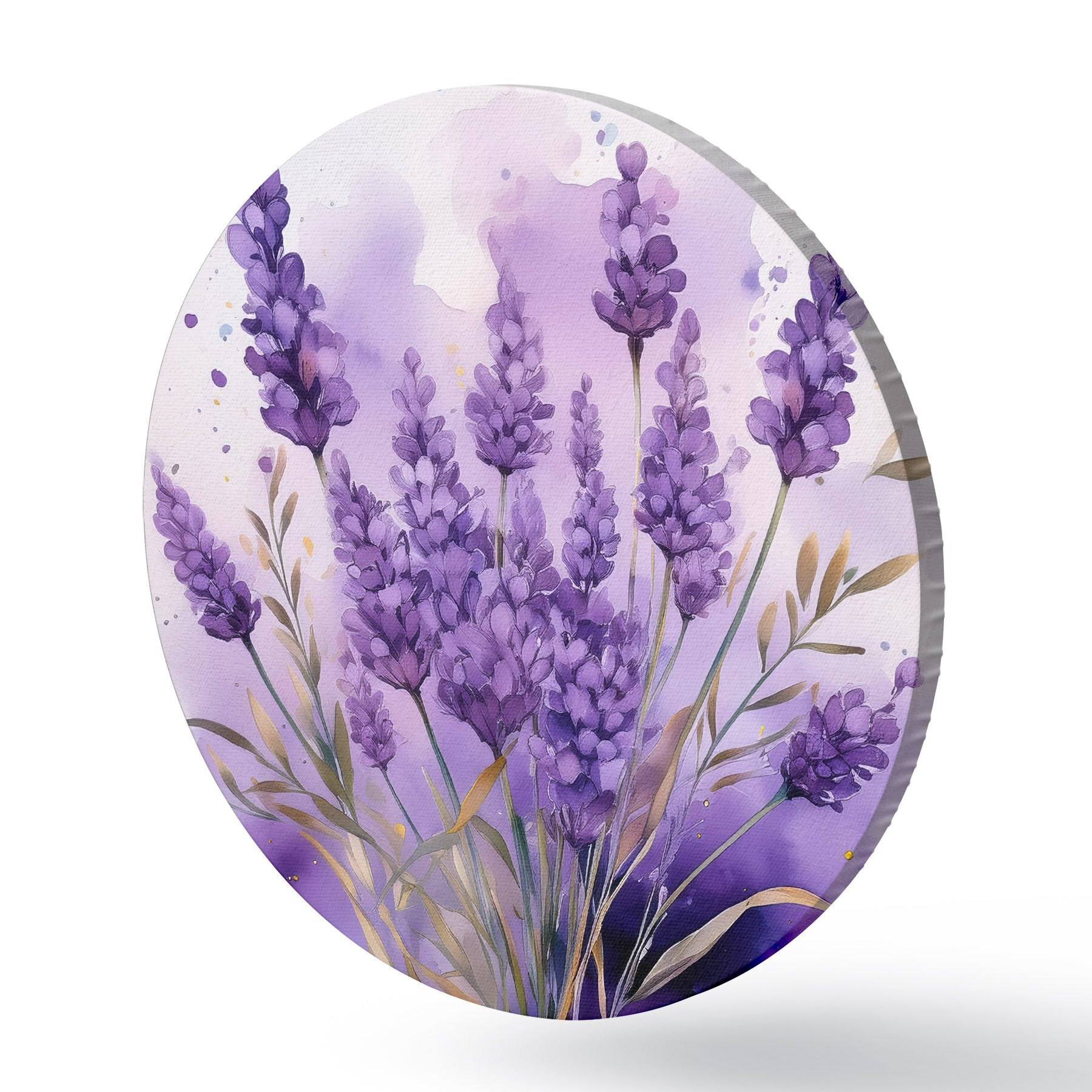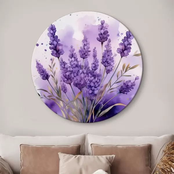 Cuadros redondos flores de lavanda en acuarela r39621