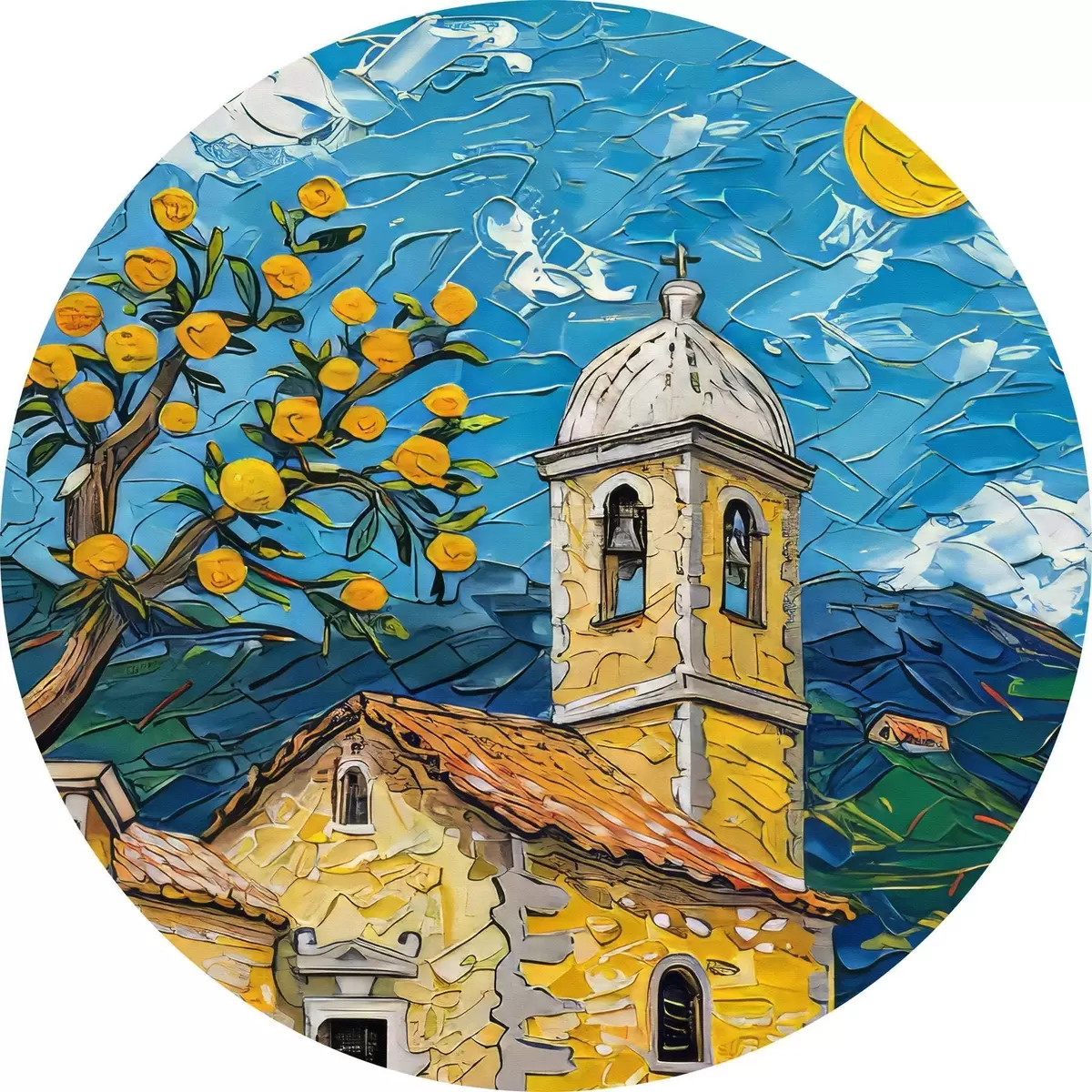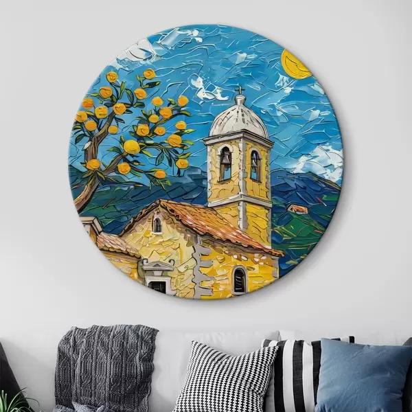 Cuadros redondos Simone Wunderlich: un pueblo francés bajo una impresionante luz nocturna r39656