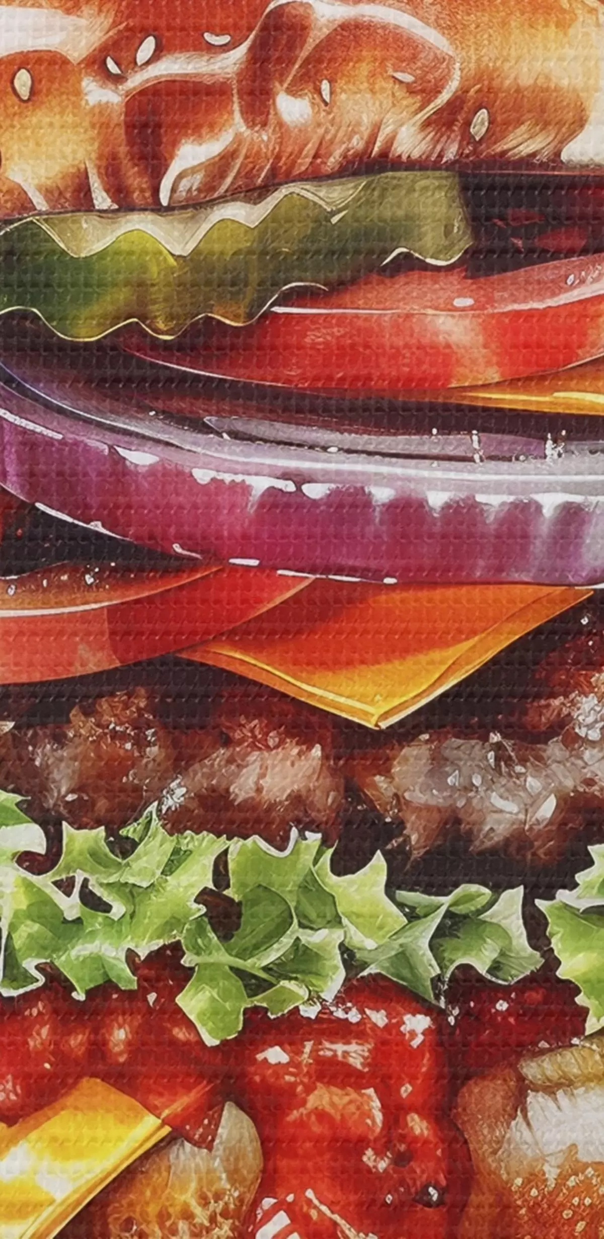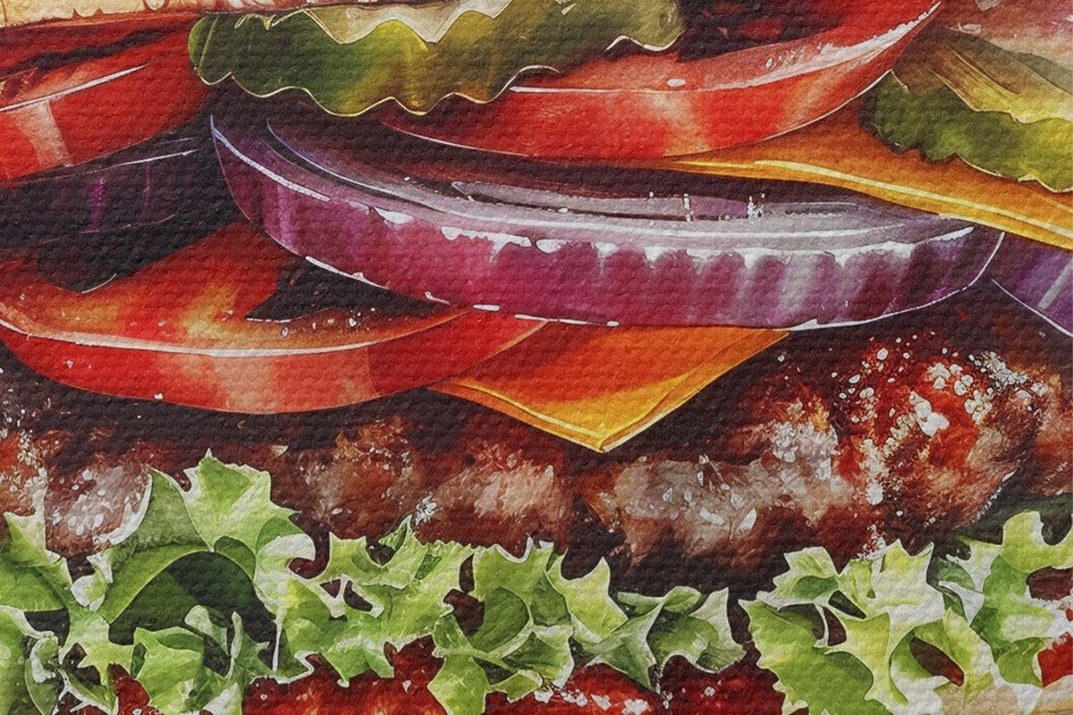 Foto Sabrosa hamburguesa con carne, floral, acuarela, arte gastronómico Nr r39699