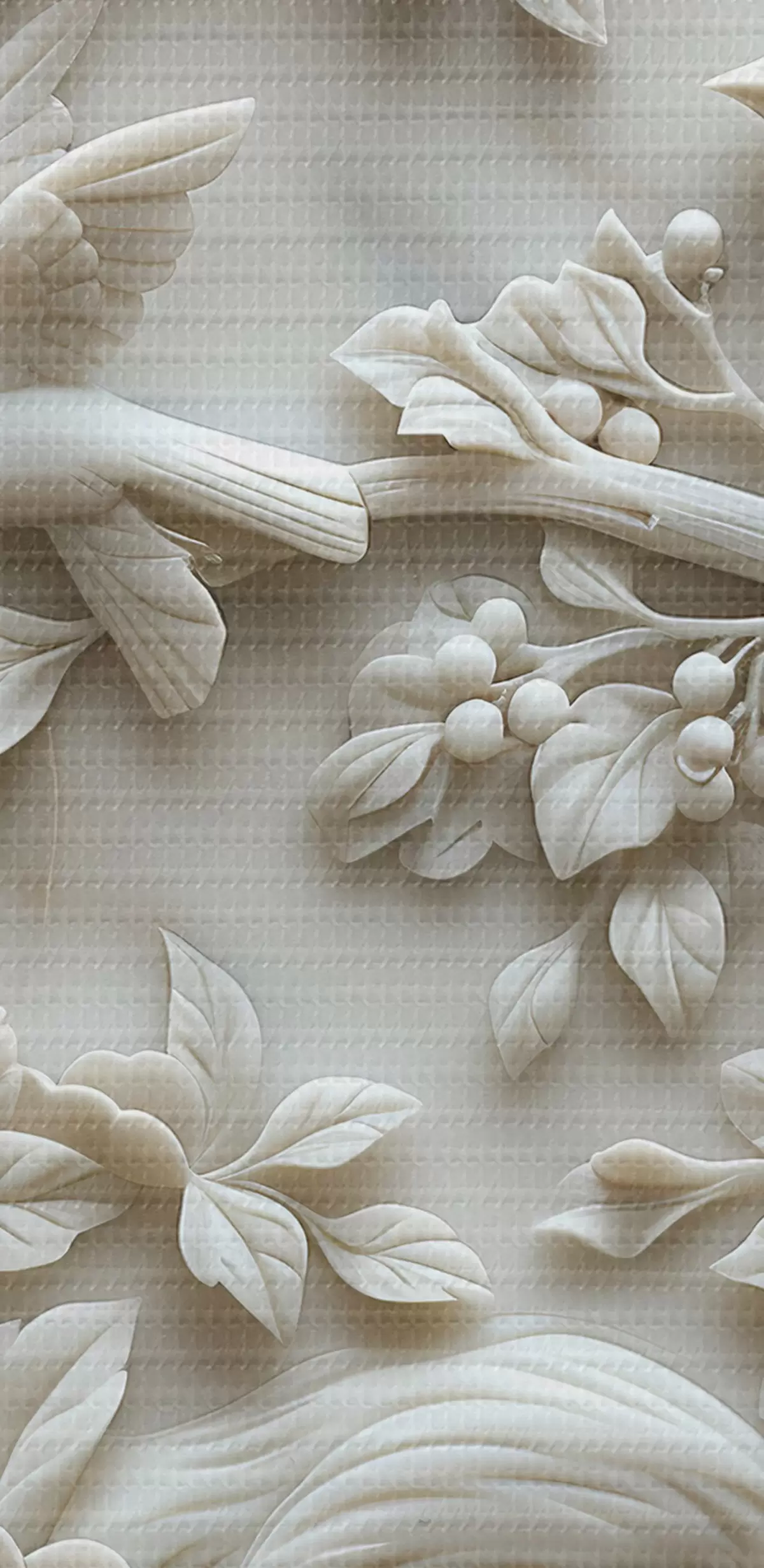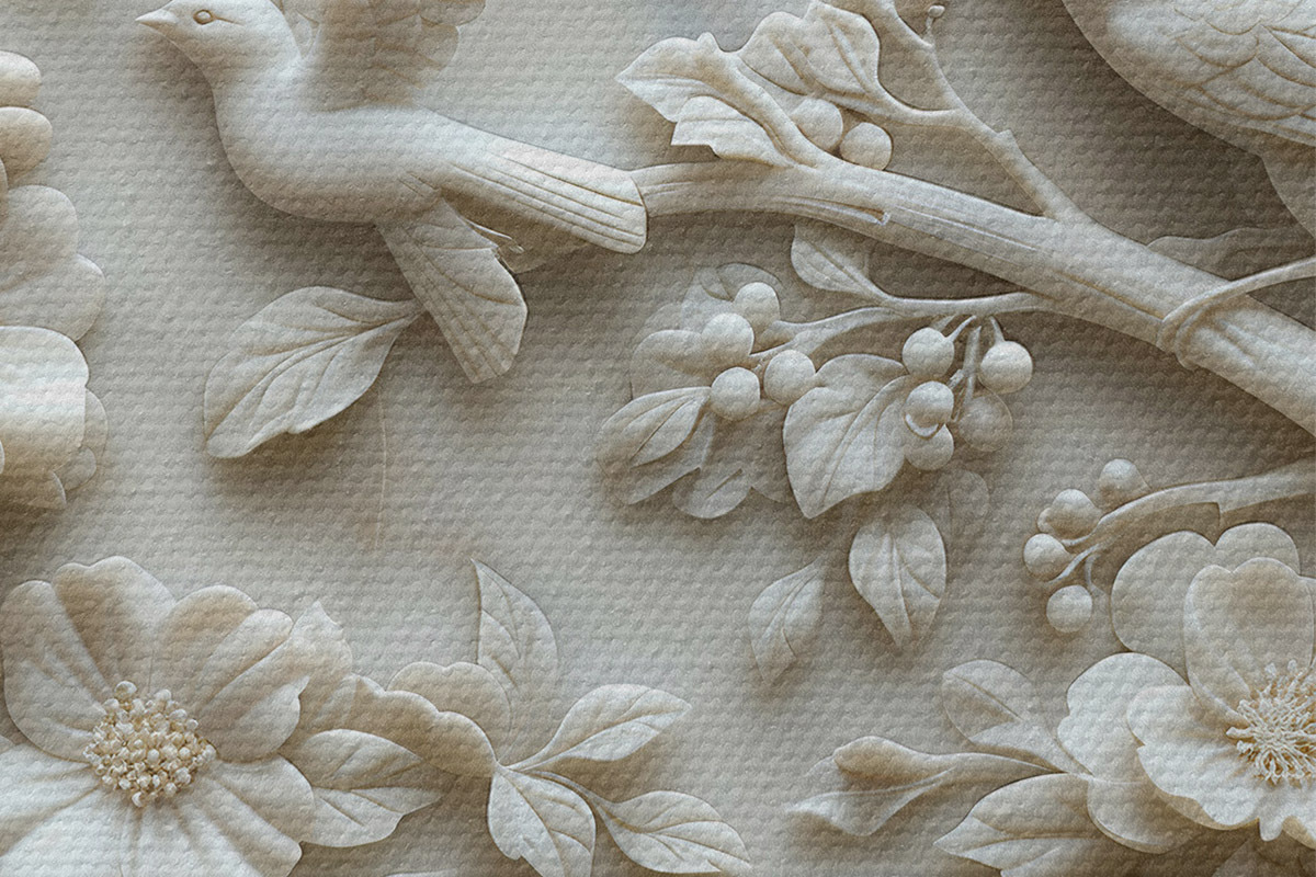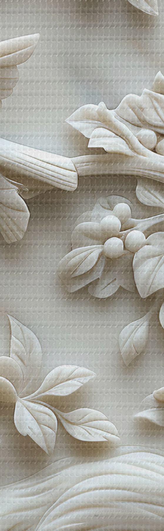Foto Jardín de mármol blanco con bajorrelieve de pájaros y flores Nr r39728