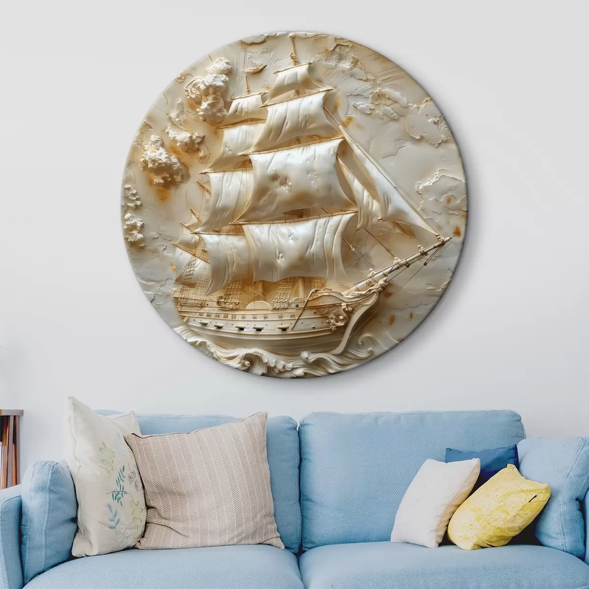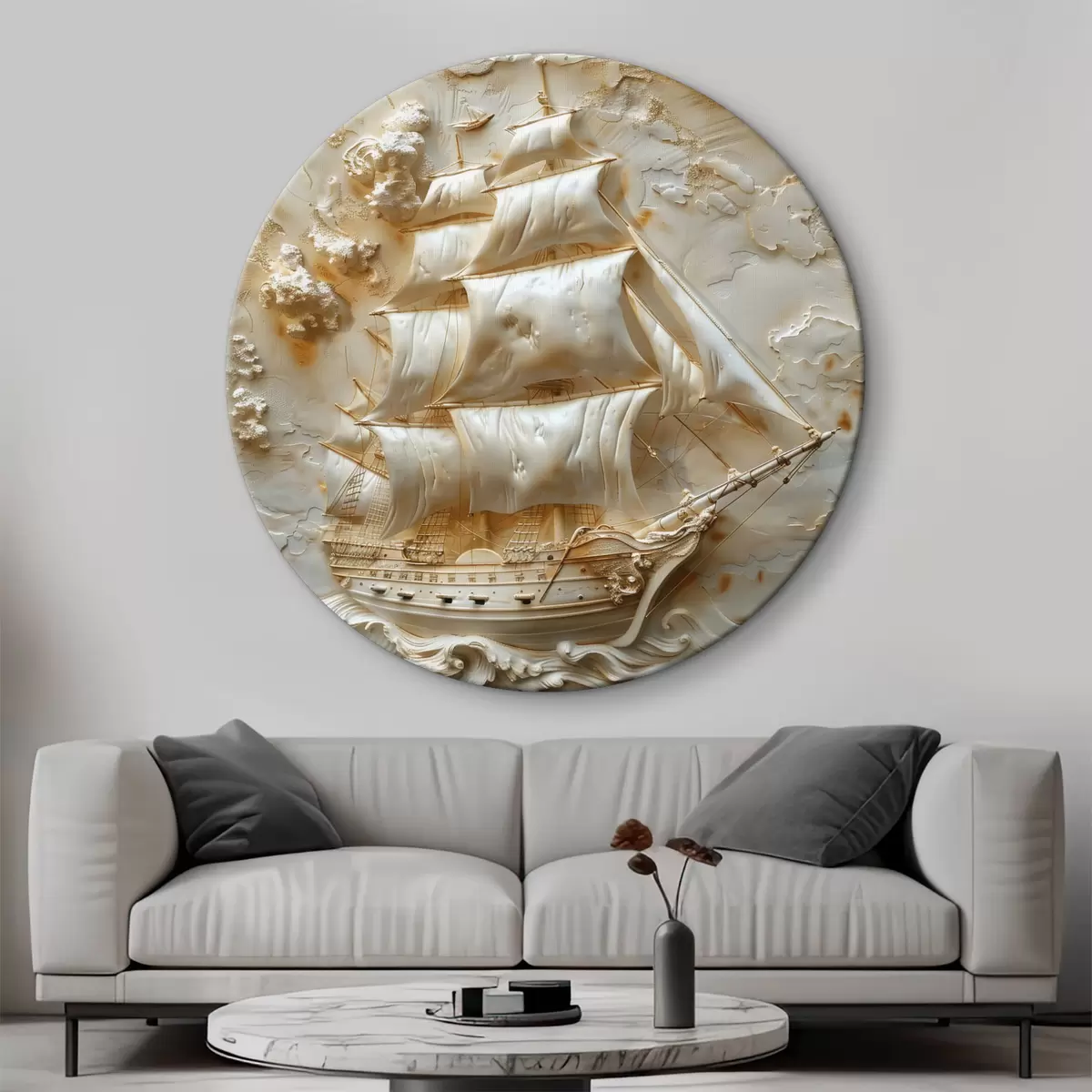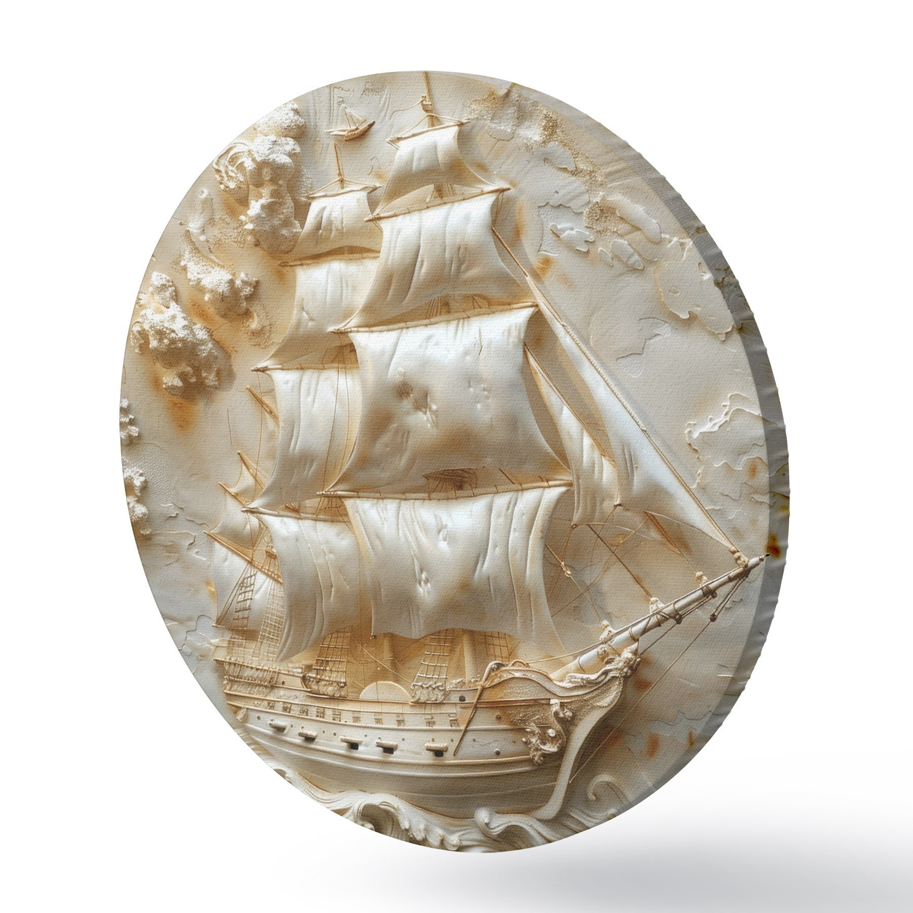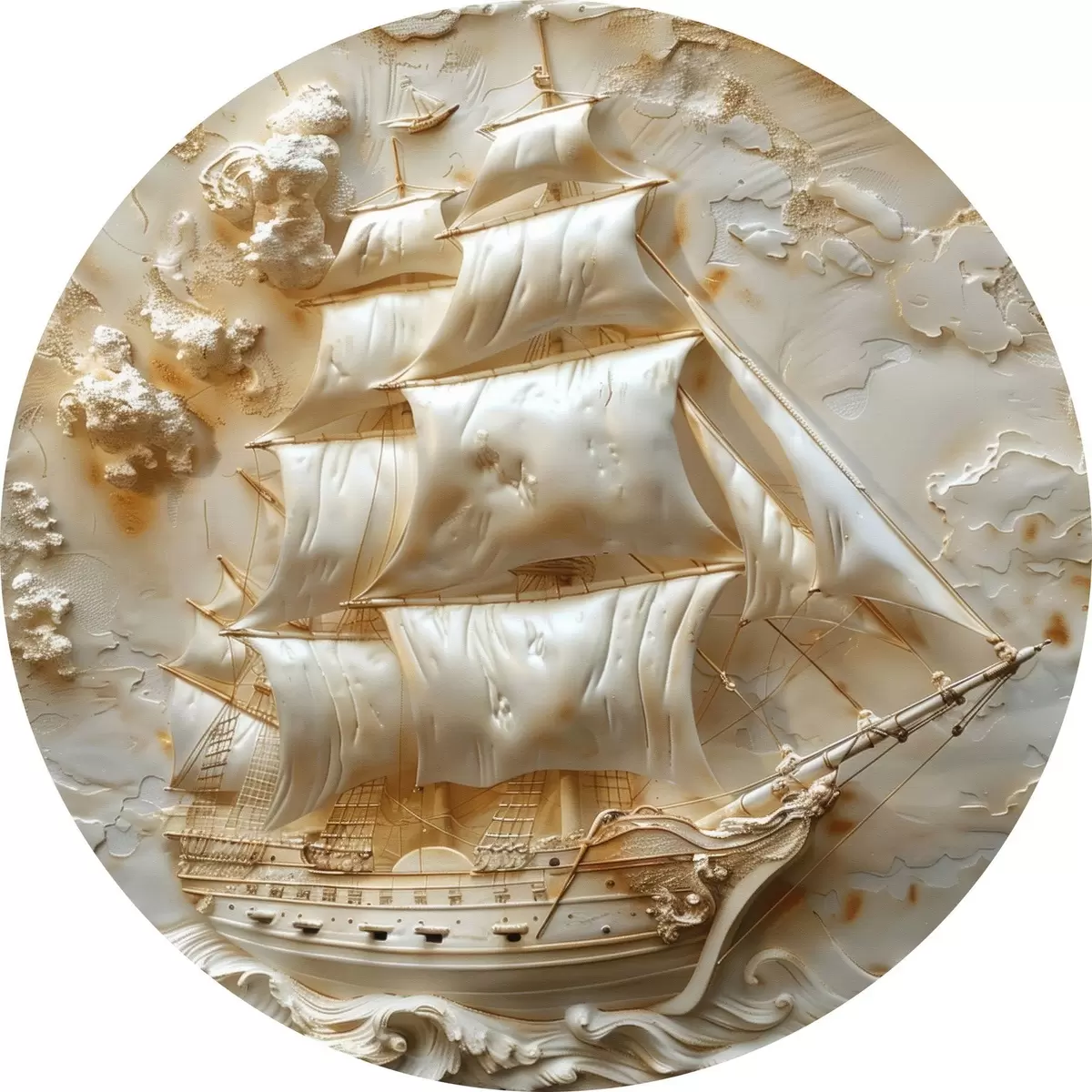 Cuadros redondos Bajorrelieve de un barco navegando en el mar r39757