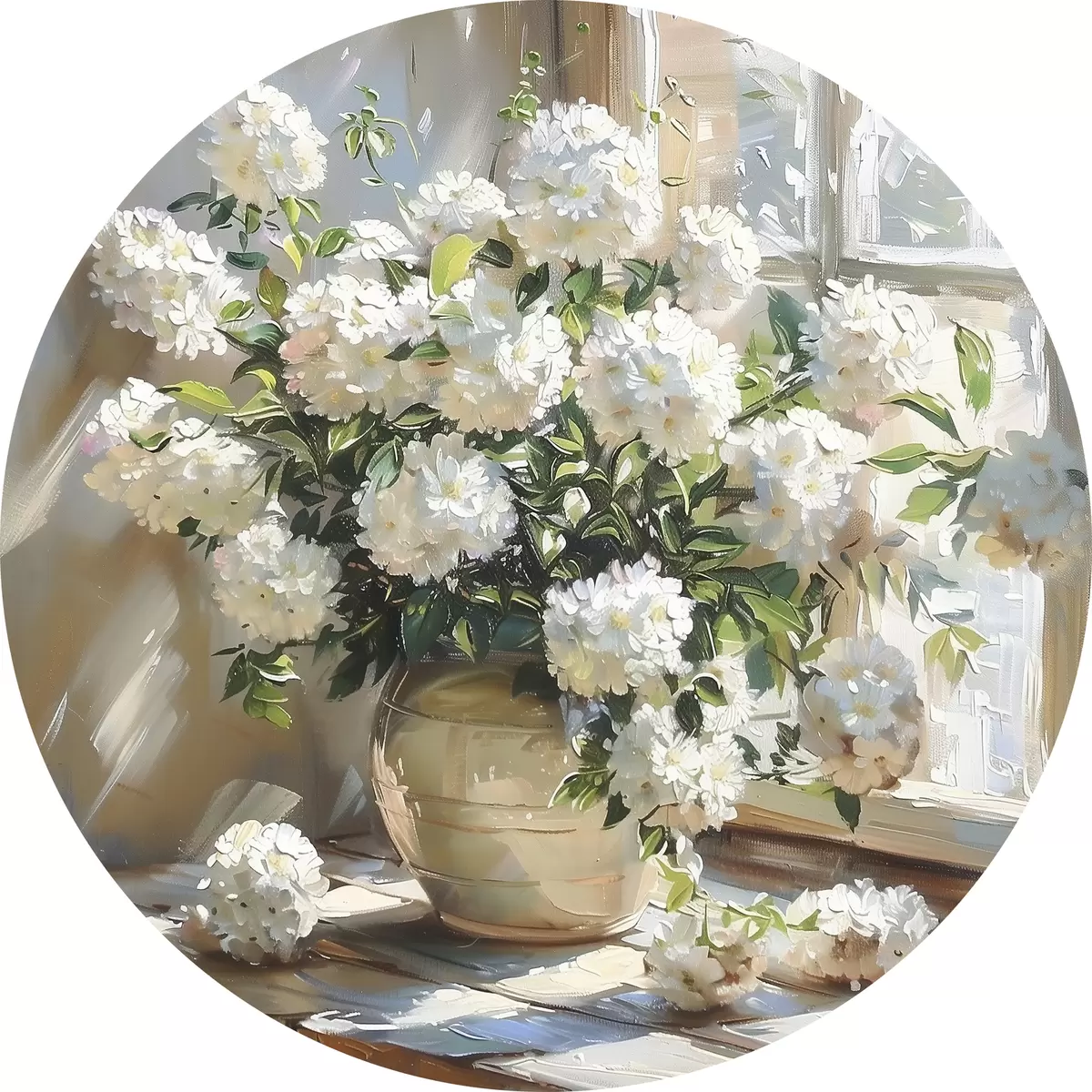 Cuadros redondos Un hermoso ramo en el alféizar de la ventana r39779