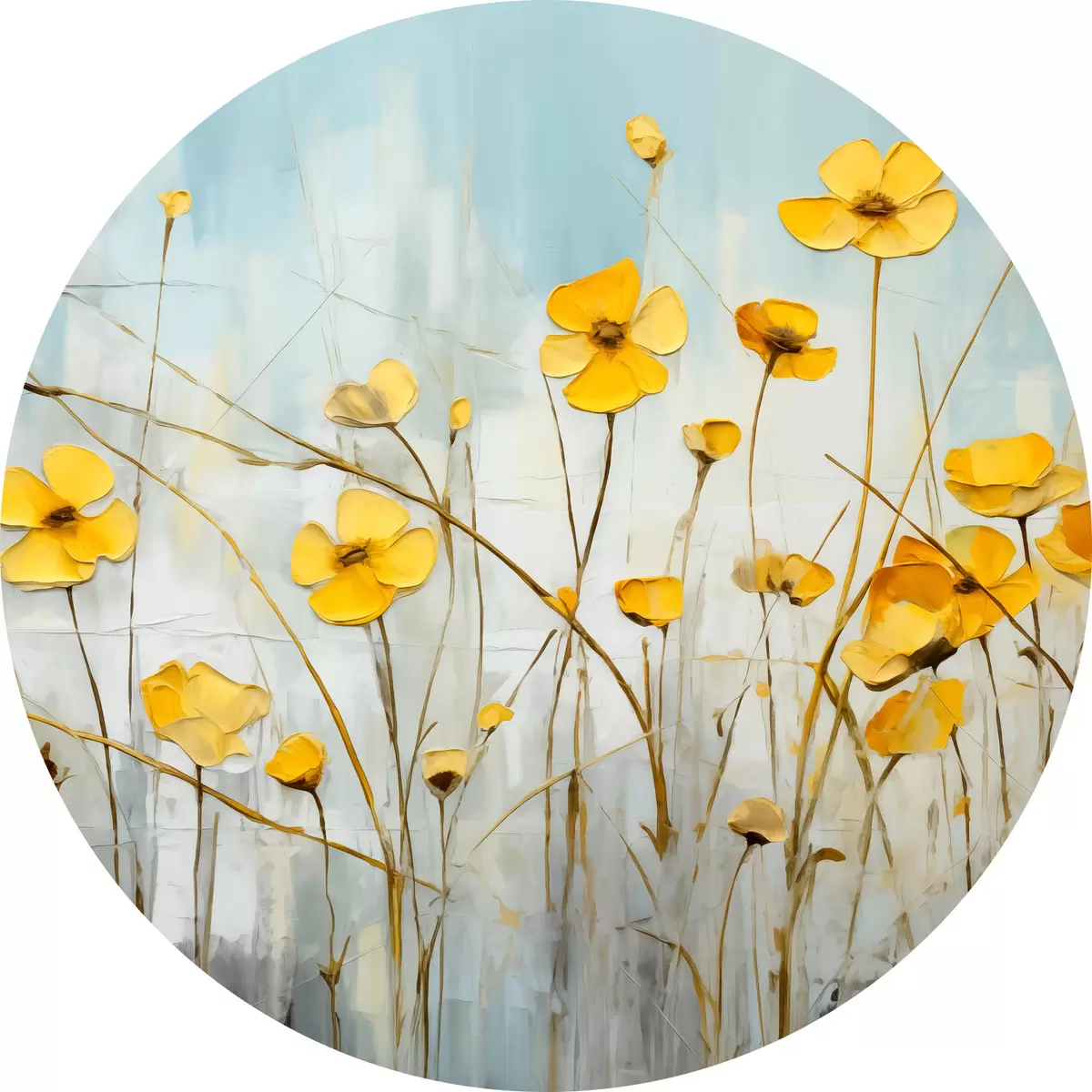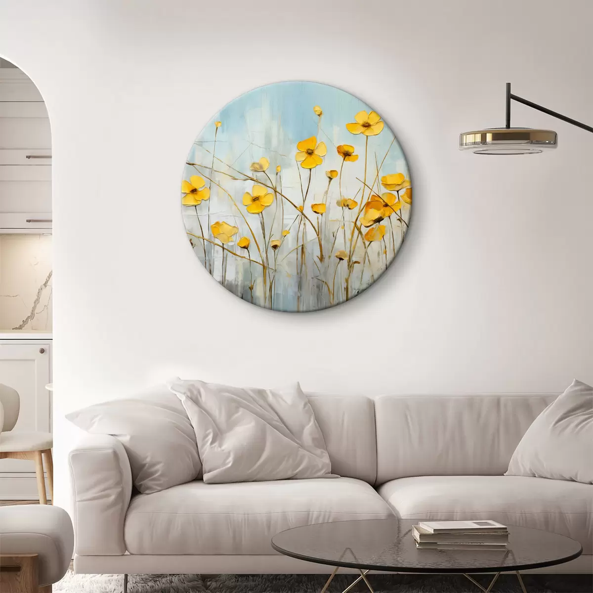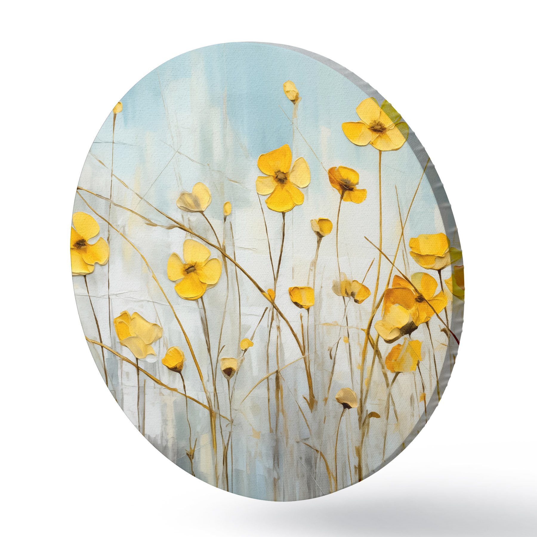 Cuadros redondos Pequeñas flores amarillas en un cuadro al óleo de tallo largo r39823