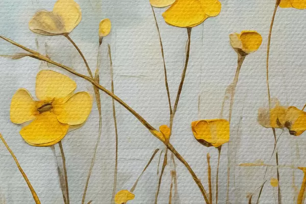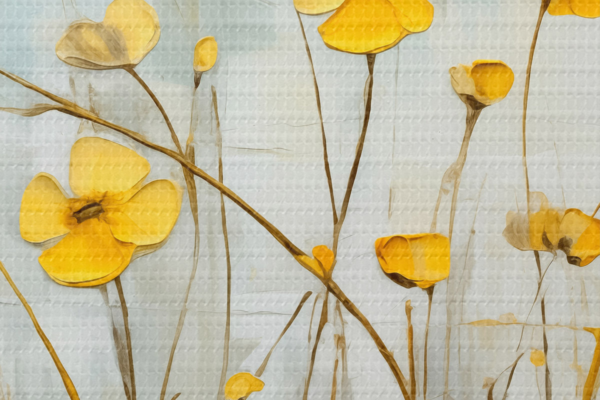 Foto Pequeñas flores amarillas en un cuadro al óleo de tallo largo Nr r39823