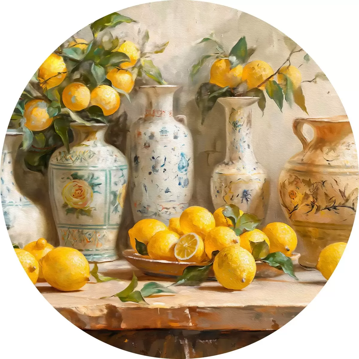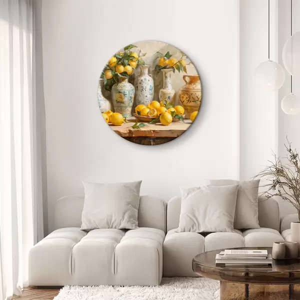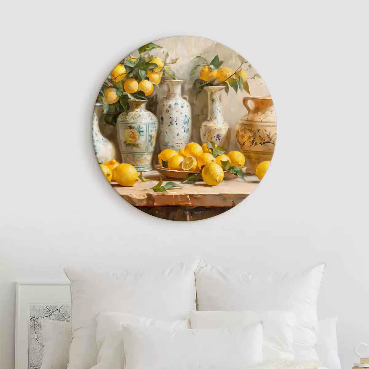 Cuadros redondos Limones y jarrones antiguos sobre la mesa r39833