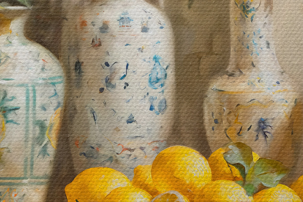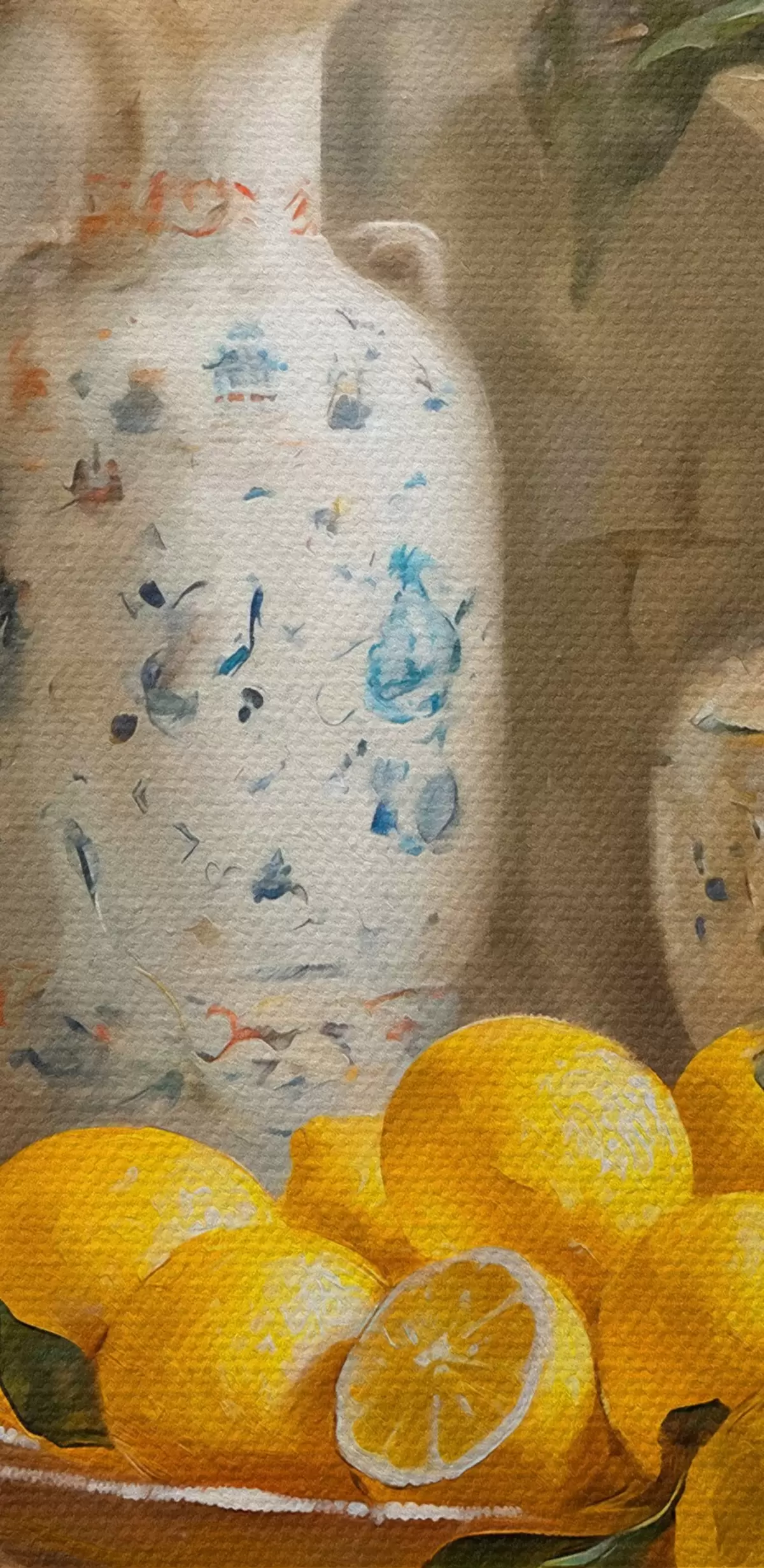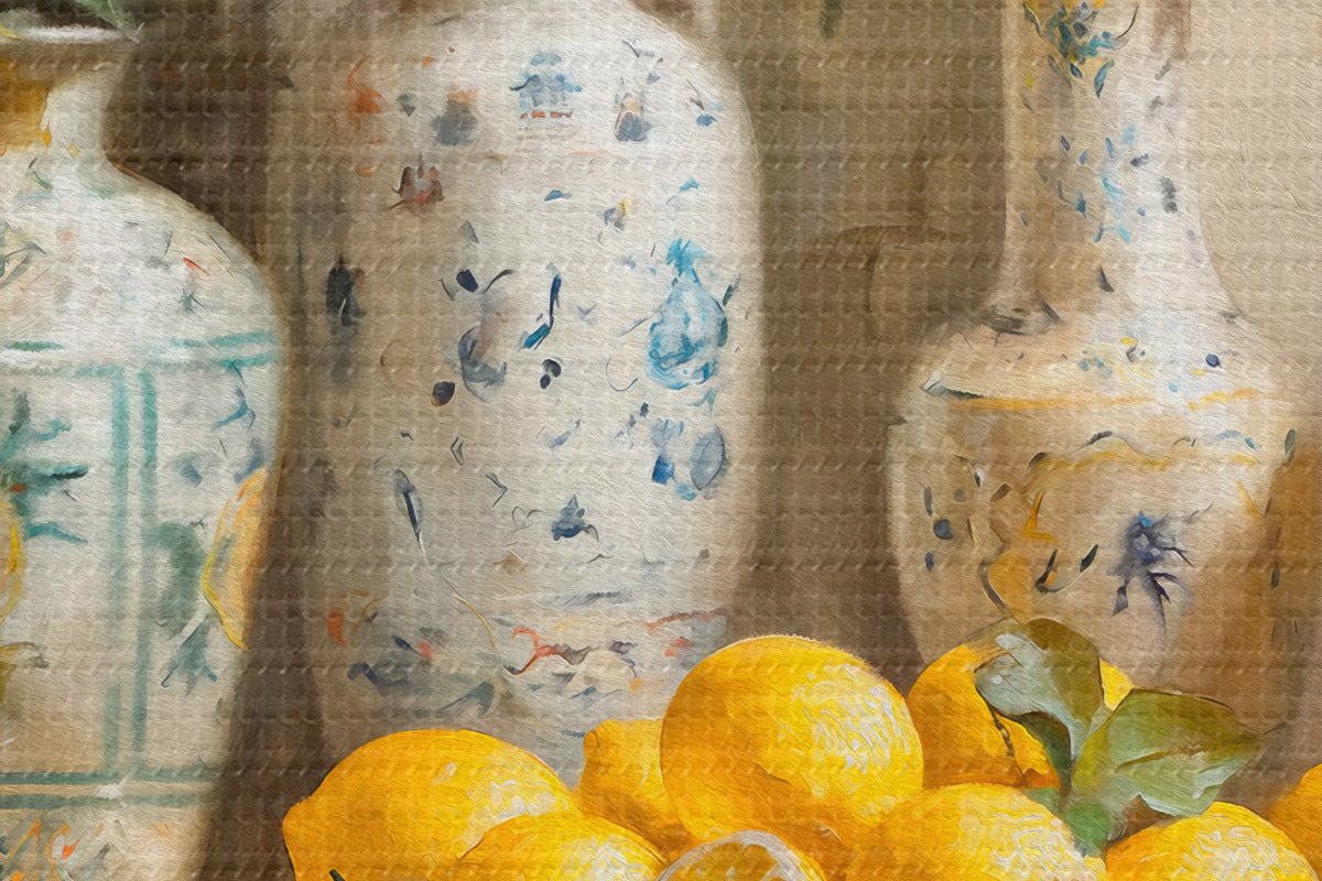 Foto Limones y jarrones antiguos sobre la mesa Nr r39833