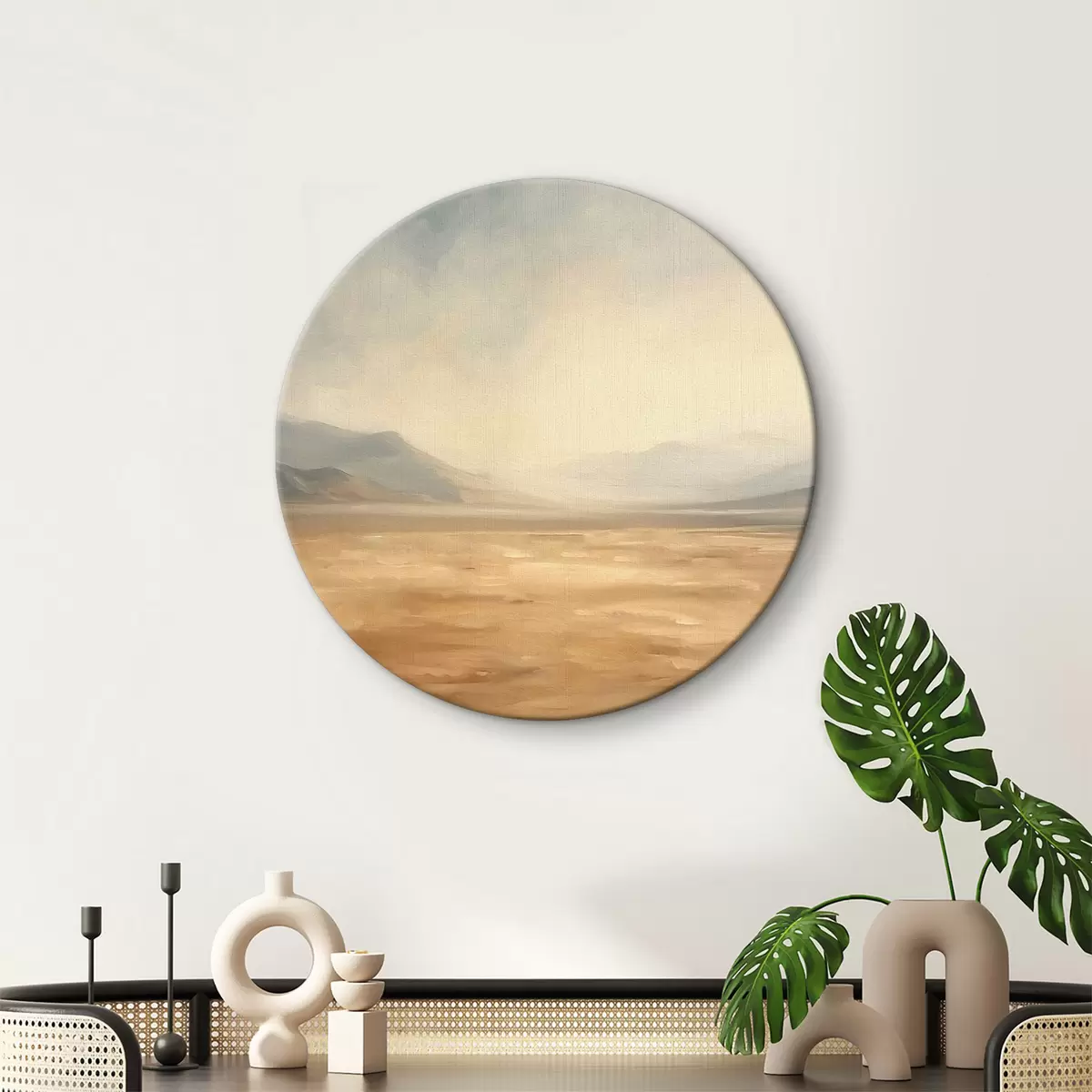 Cuadros redondos Desierto con montañas al fondo un paisaje tranquilo r39835