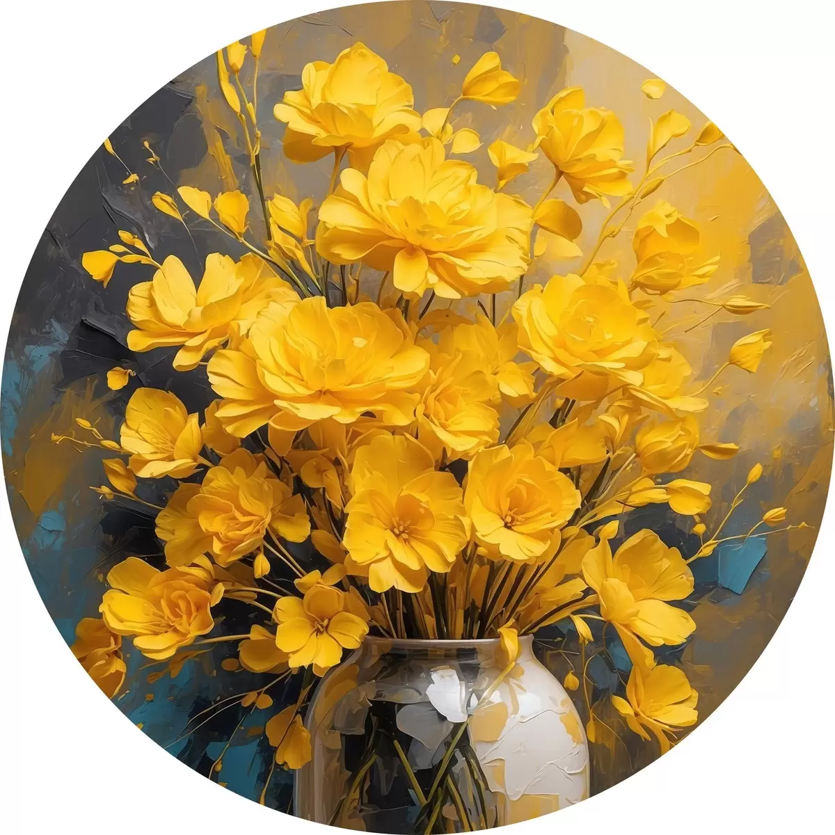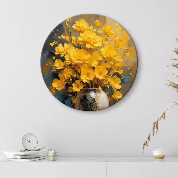 Cuadros redondos Flores amarillas en jarrón sobre fondo acrílico multicolor r39854