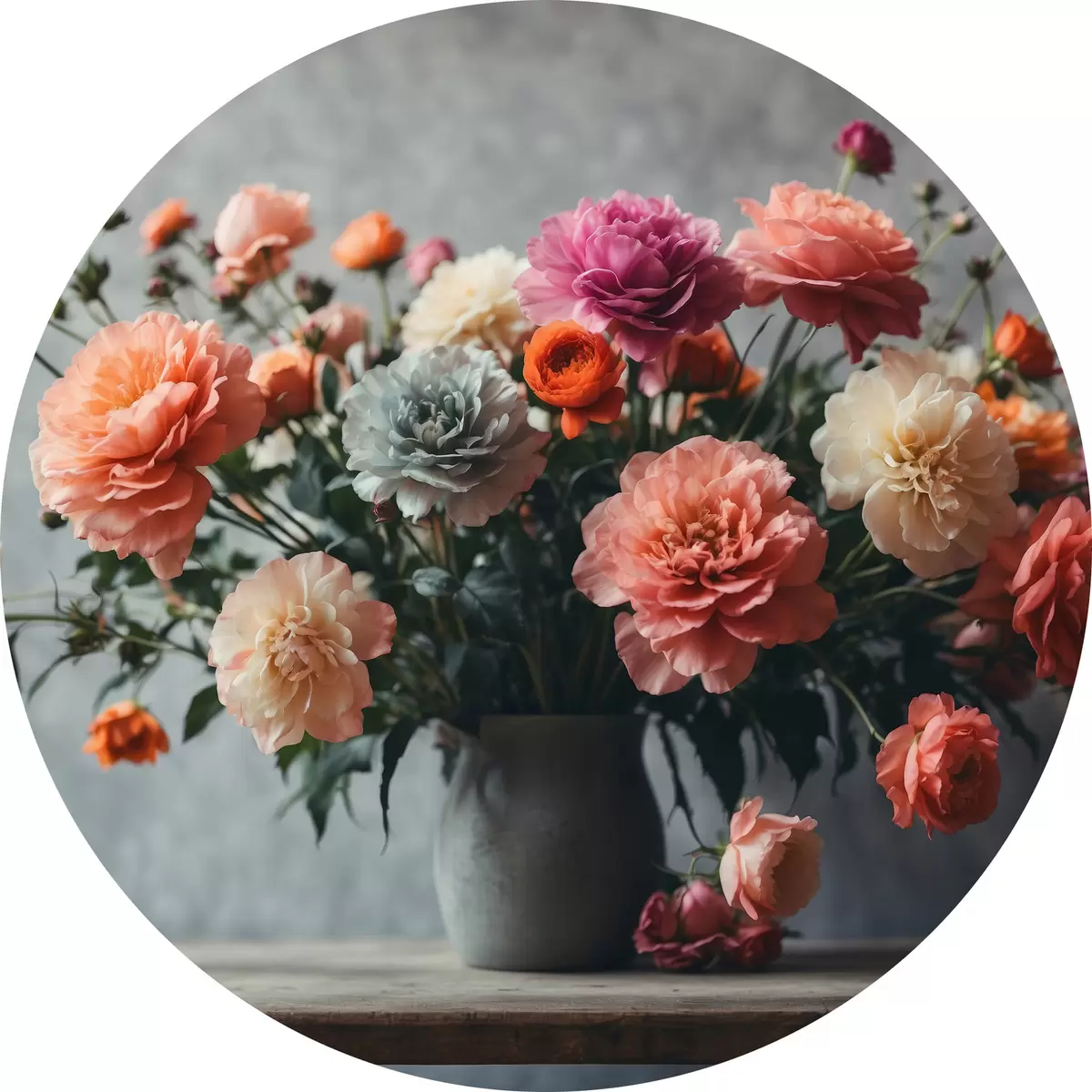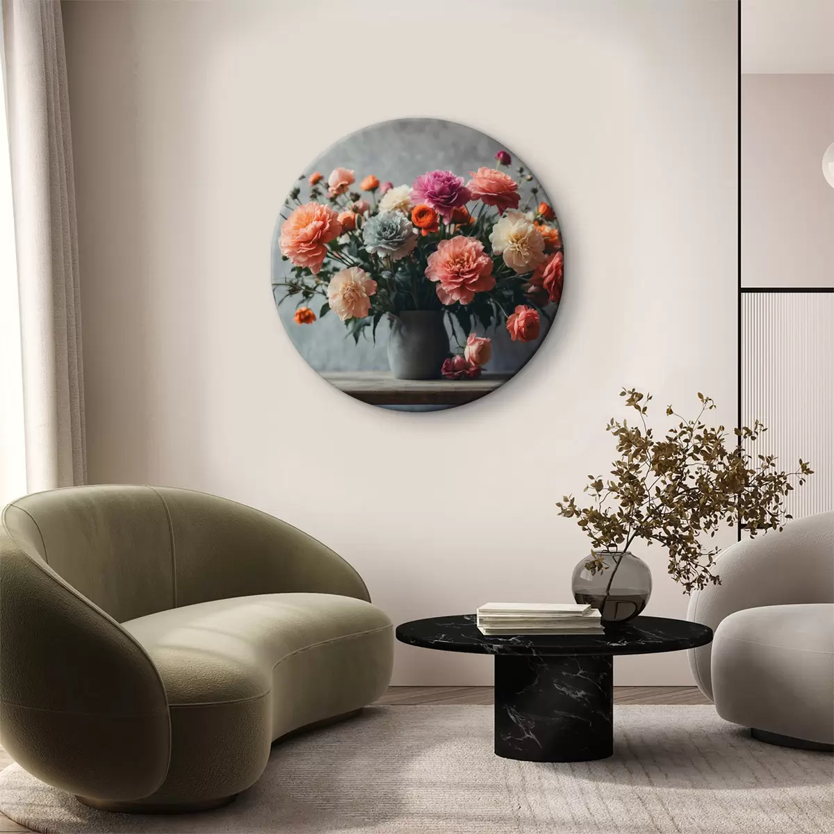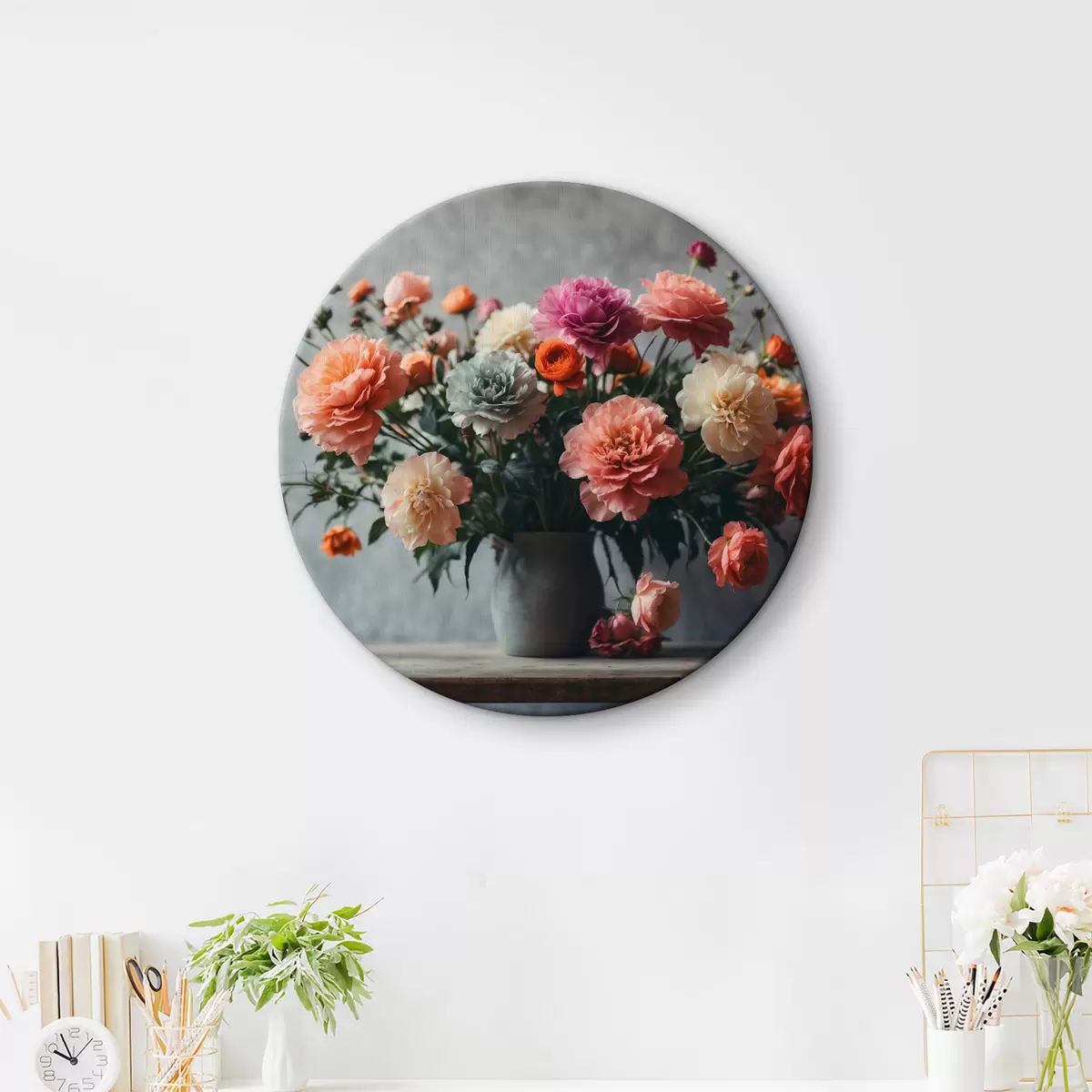 Cuadros redondos Ramo de flores en un jarrón sobre una mesa r39859