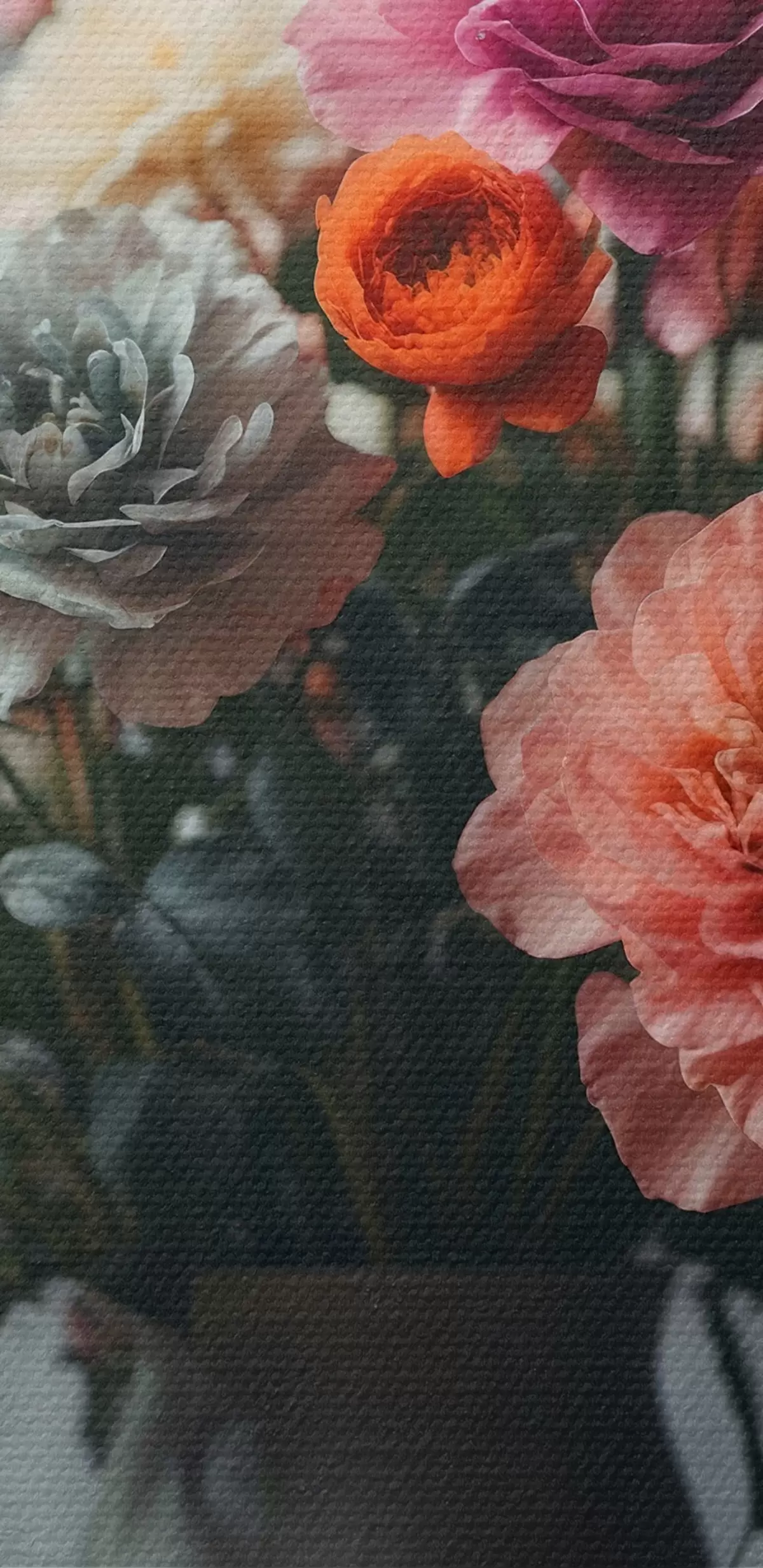 Hay tres tipos de material disponibles para pedidos: Lienzo Económico - material denso y duradero para impresión digital, idéntico al lienzo de pintor, superficie impermeable, reproducción realista de los detalles, material de grano medio. Lienzo Premium - la textura se asemeja a la de un lienzo de pintor (pequeños hilos entrelazados). Reproducción suave y detallada de la imagen sobre una superficie mate. Eco-Premium - tejido 100% algodón de alta calidad. Gracias a las fibras naturales de algodón, el material es duradero y resistente al desgaste. Excelente reproducción del color y el detalle.
