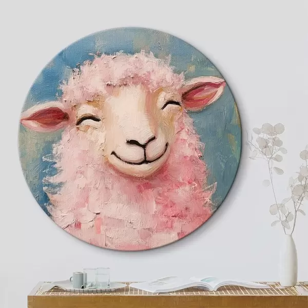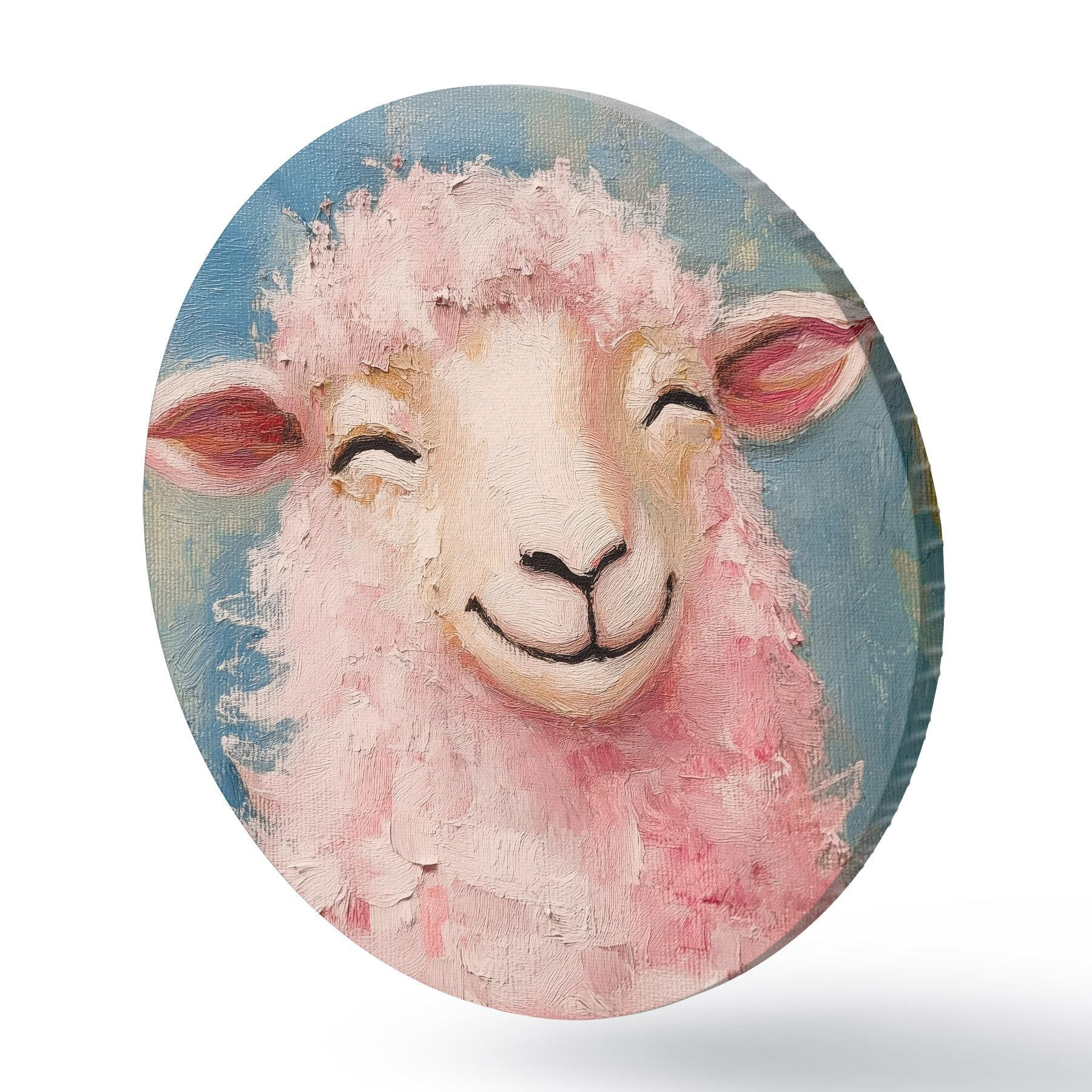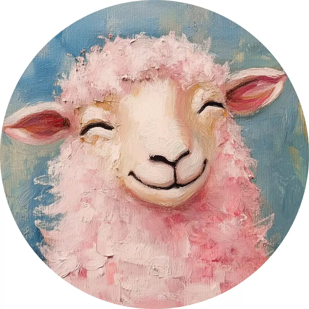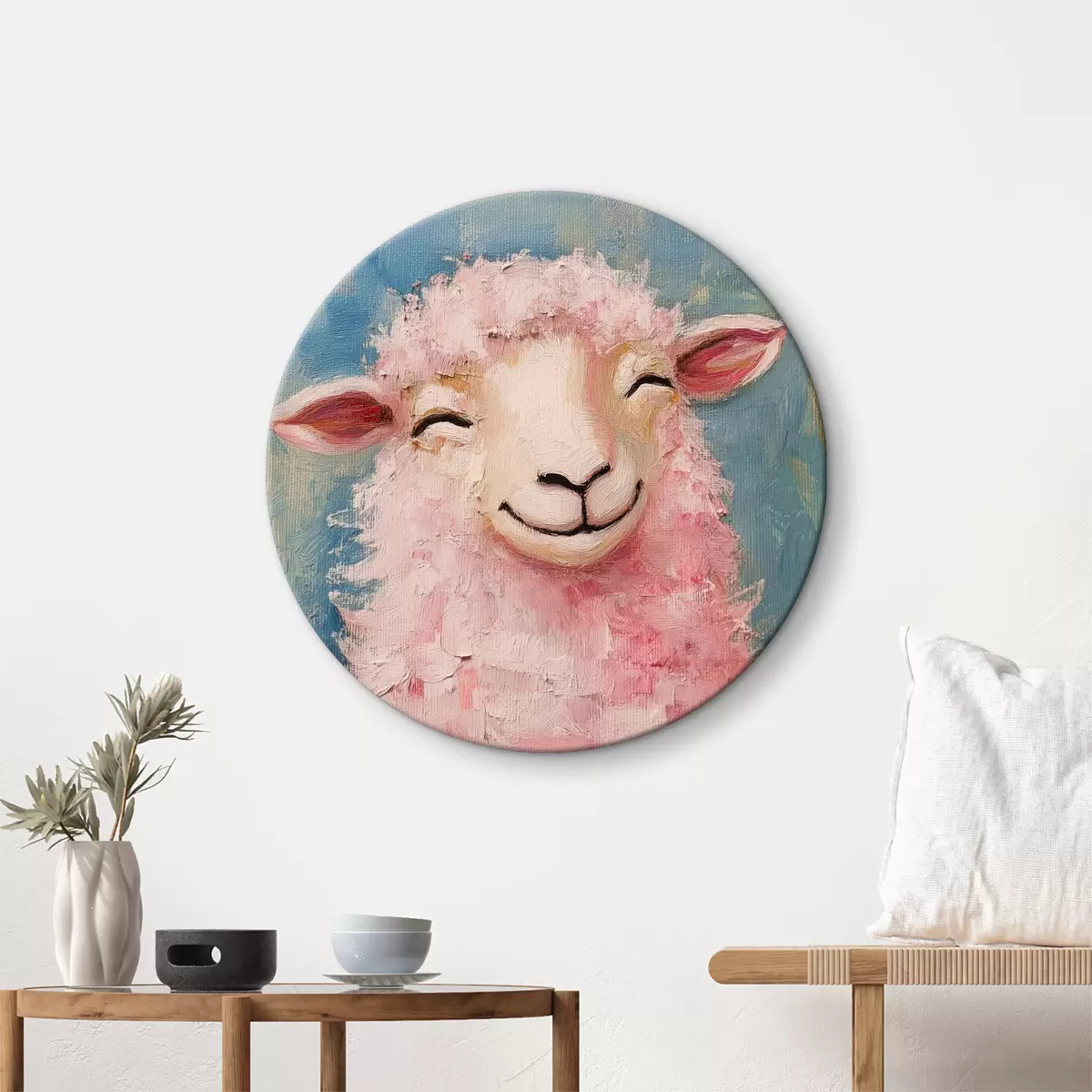 Cuadros redondos Carnero alegre con lana rosa r39911