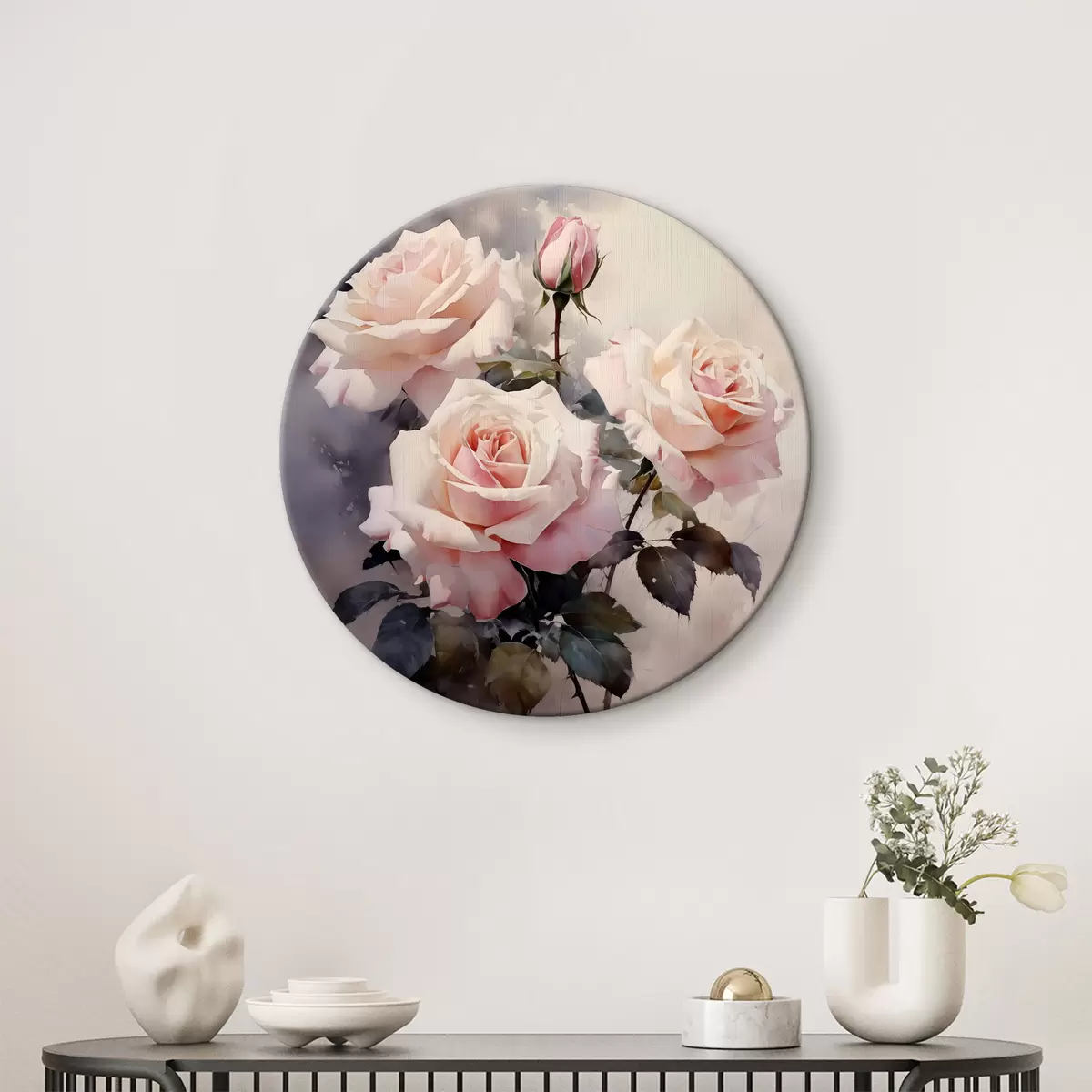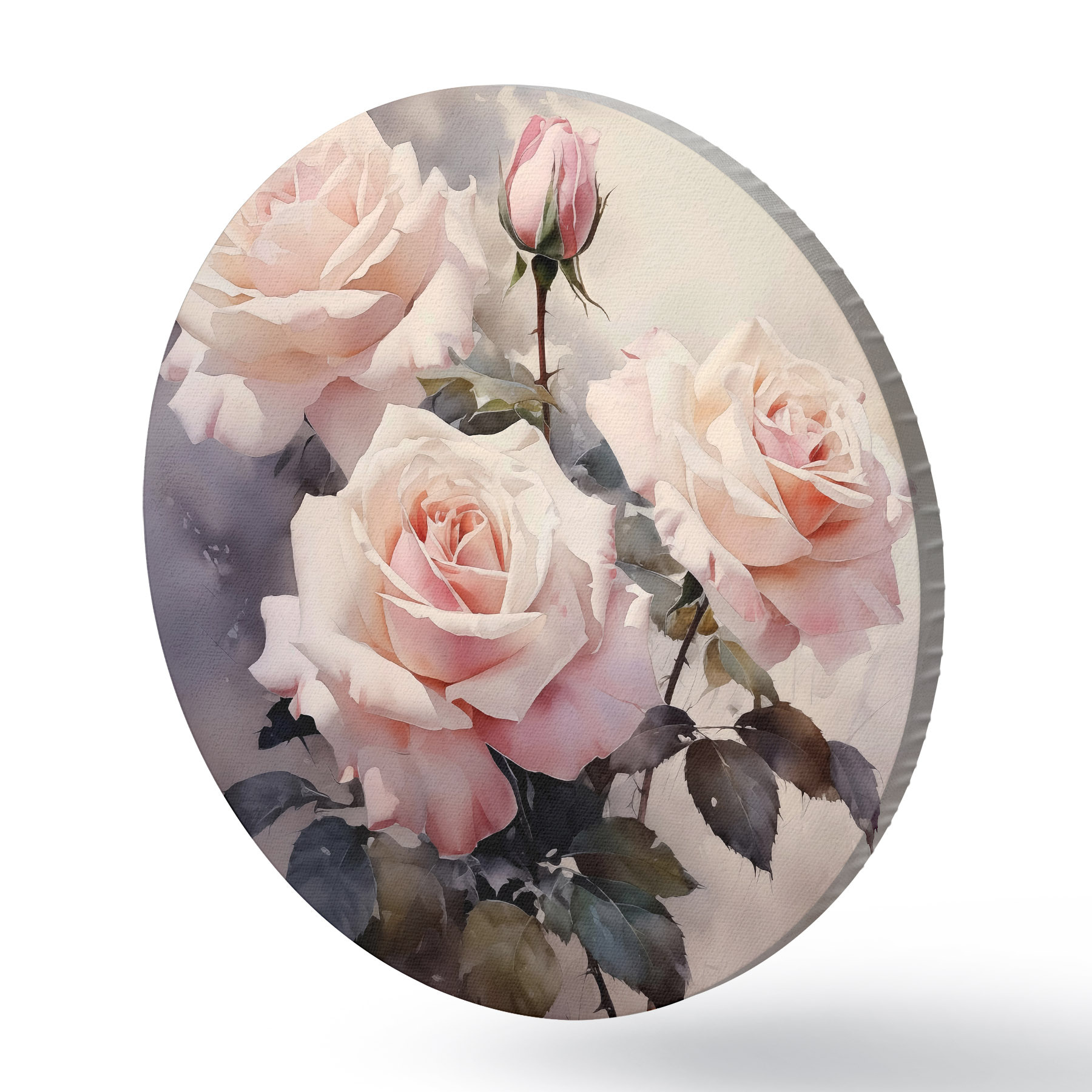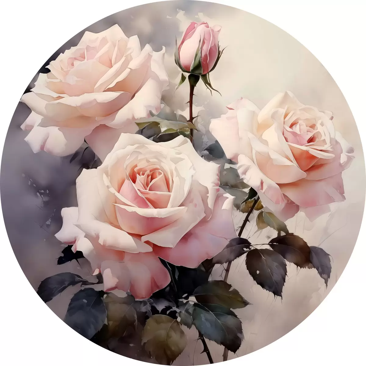 Cuadros redondos Acuarela de rosas blancas y rosadas sobre fondo oscuro r39927
