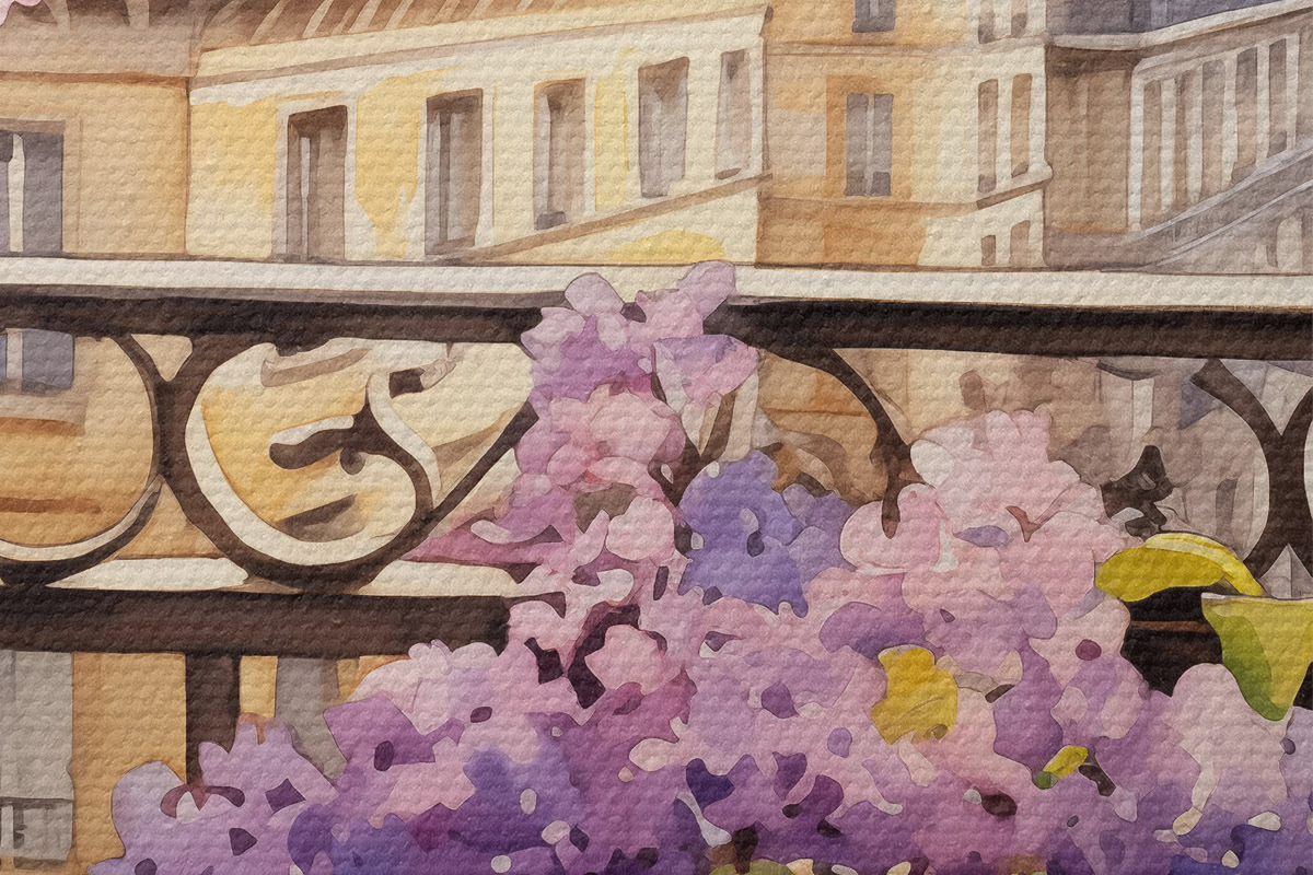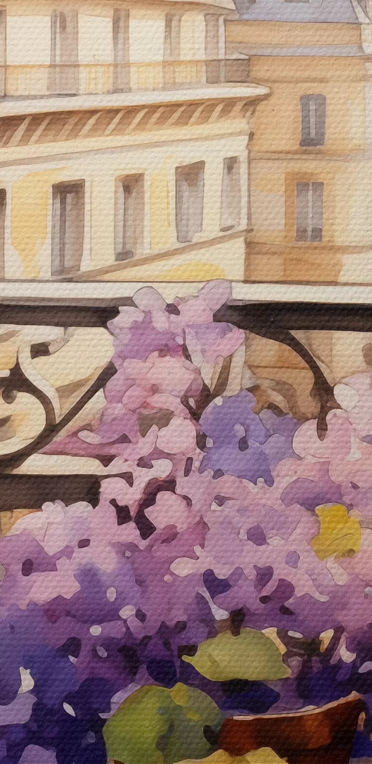 Foto Violetas en maceta en un balcón de París acuarela Nr r39931