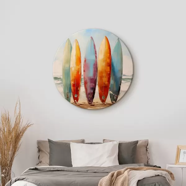 Cuadros redondos Cuadro de tablas de surf en la playa r39938