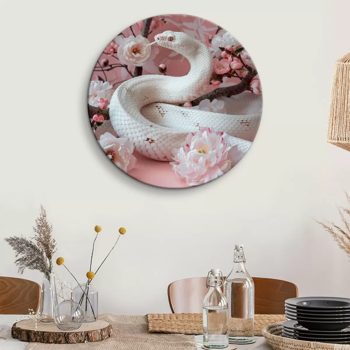 Cuadros redondos Serpiente blanca y flores rosas r39941