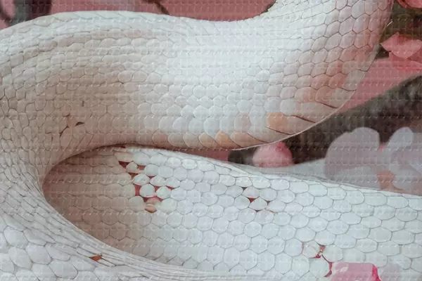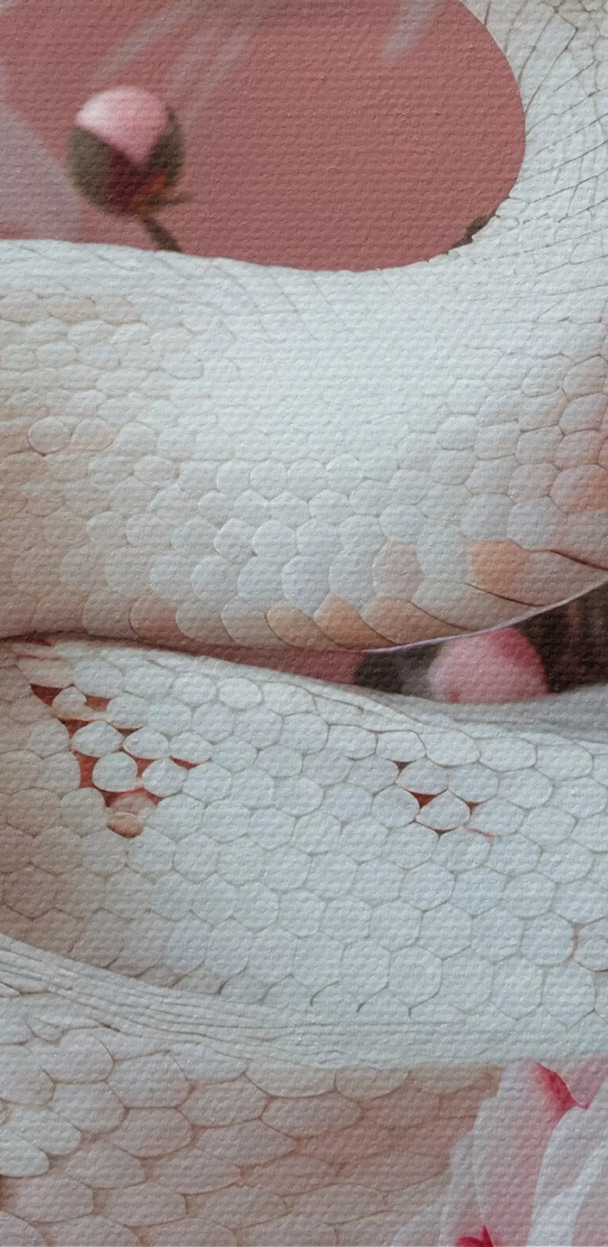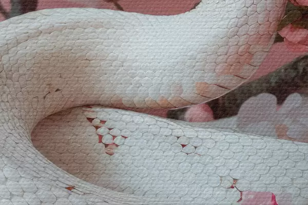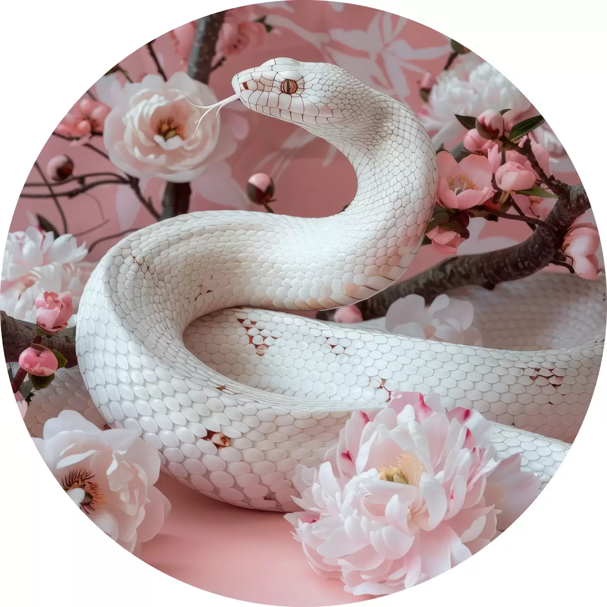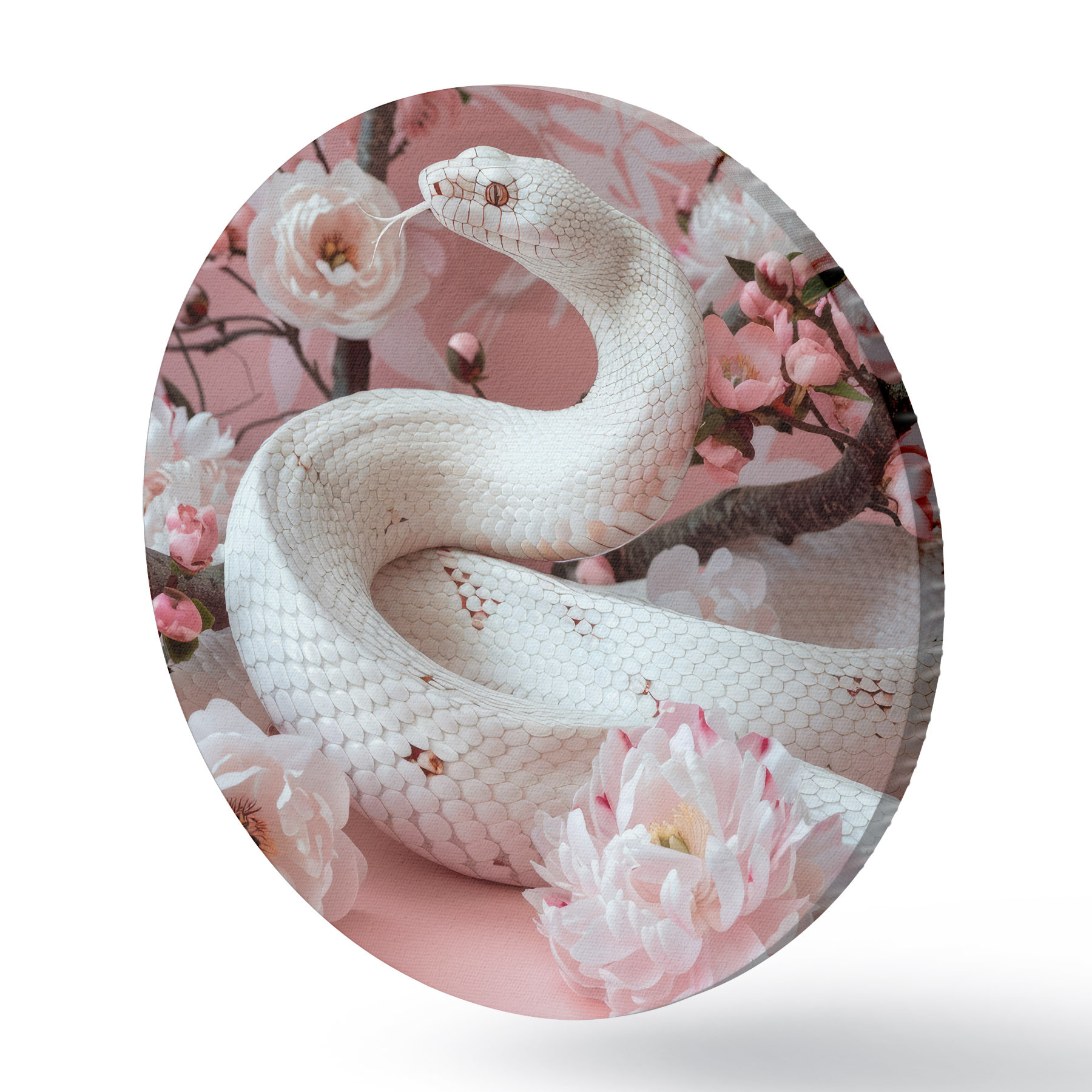 Cuadros redondos Serpiente blanca y flores rosas r39941