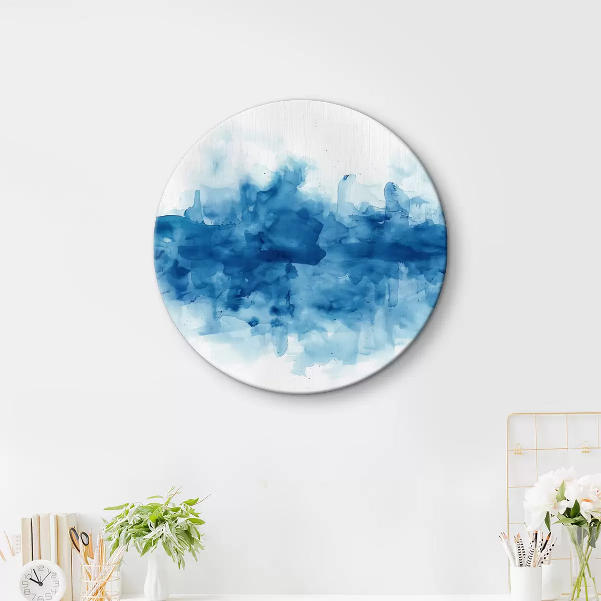 Cuadros redondos Acuarela,manchas,azul r39954
