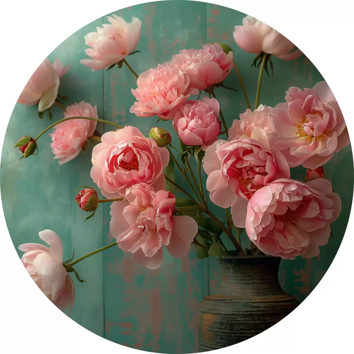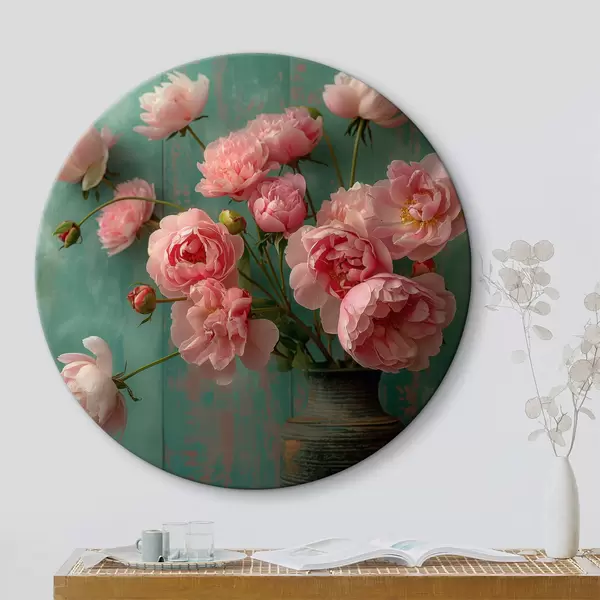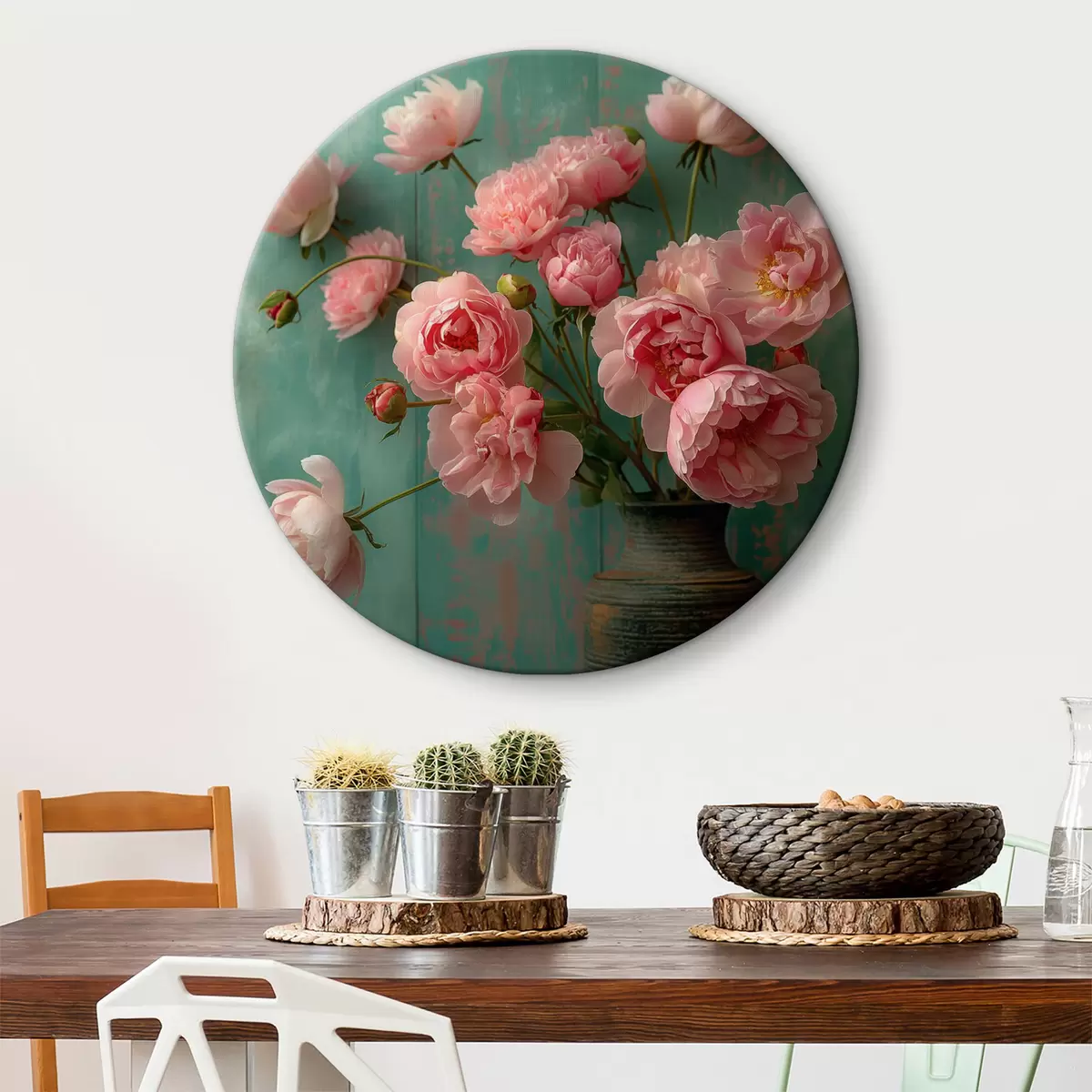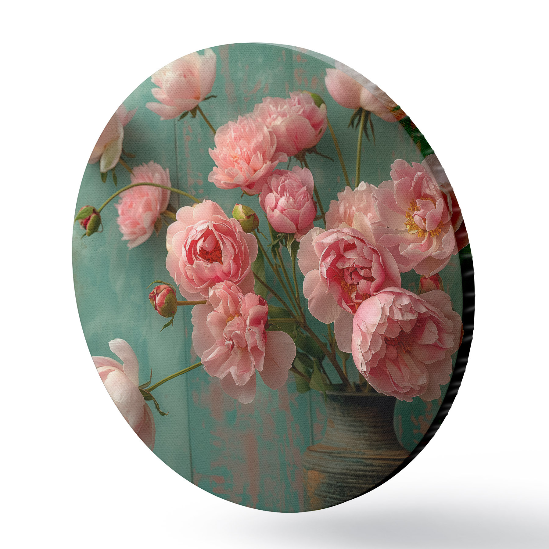 Cuadros redondos Flores rosas, madera, antigüedades r39957