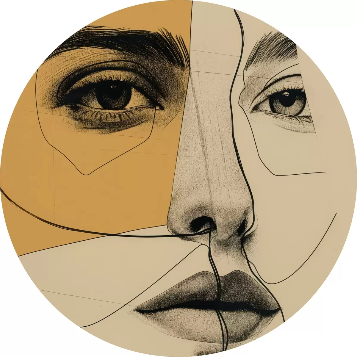 Cuadros redondos Líneas, lápiz, abstracción, antigüedades, niña r39963