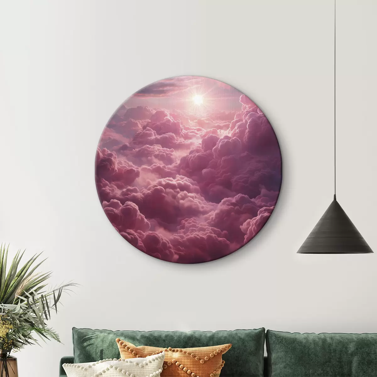 Cuadros redondos Nubes moradas y rosas, etéreas, puesta de sol, realismo r39970