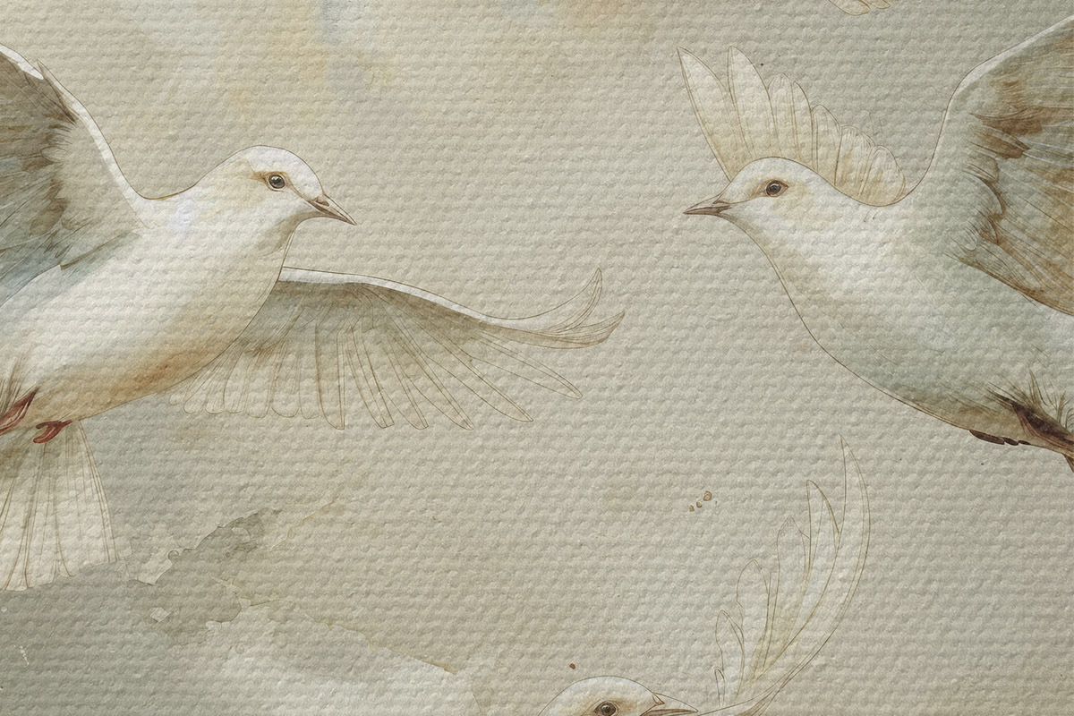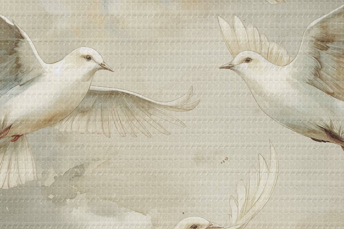 Foto Pájaros voladores de acuarela, colores beige y blanco suaves, palomas Nr r39976