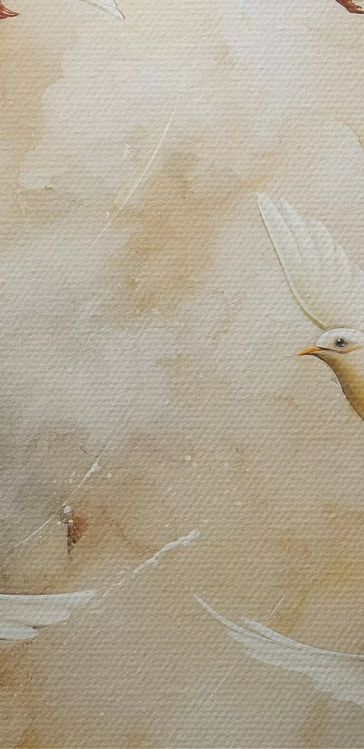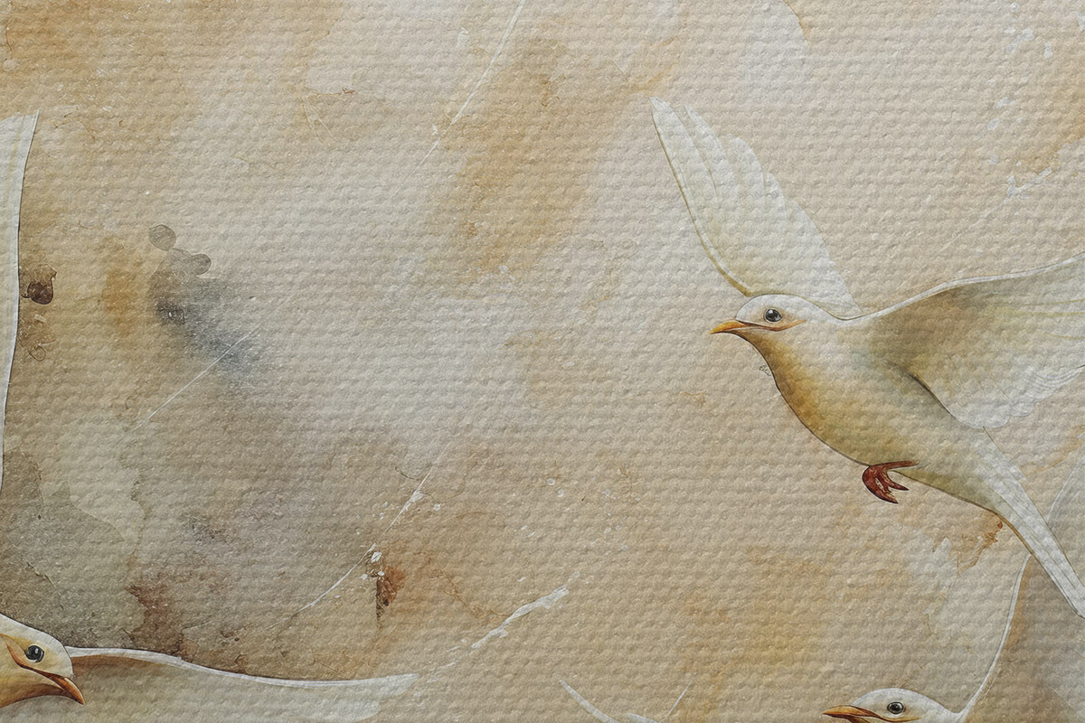 Foto Palomas voladoras en acuarela, suaves colores beige y blanco Nr r39977