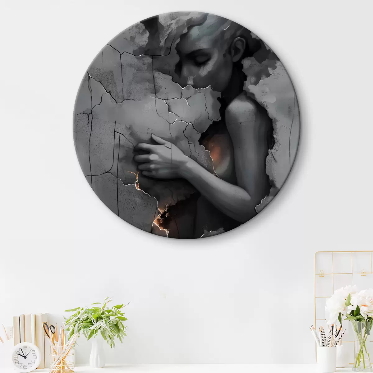 Cuadros redondos Chica, paredes, culpa r39994