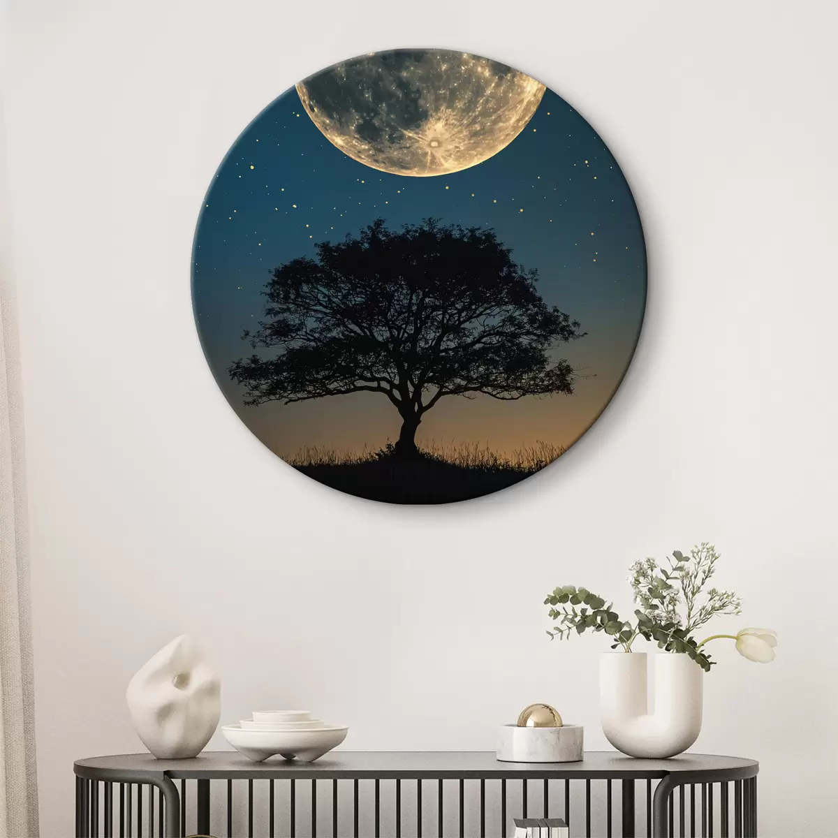 Cuadros redondos Luna llena, arbol r40008