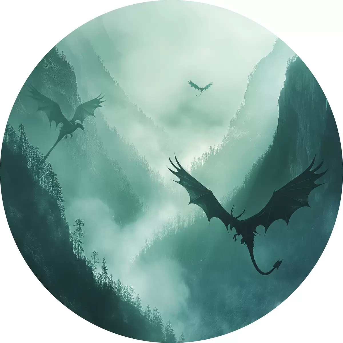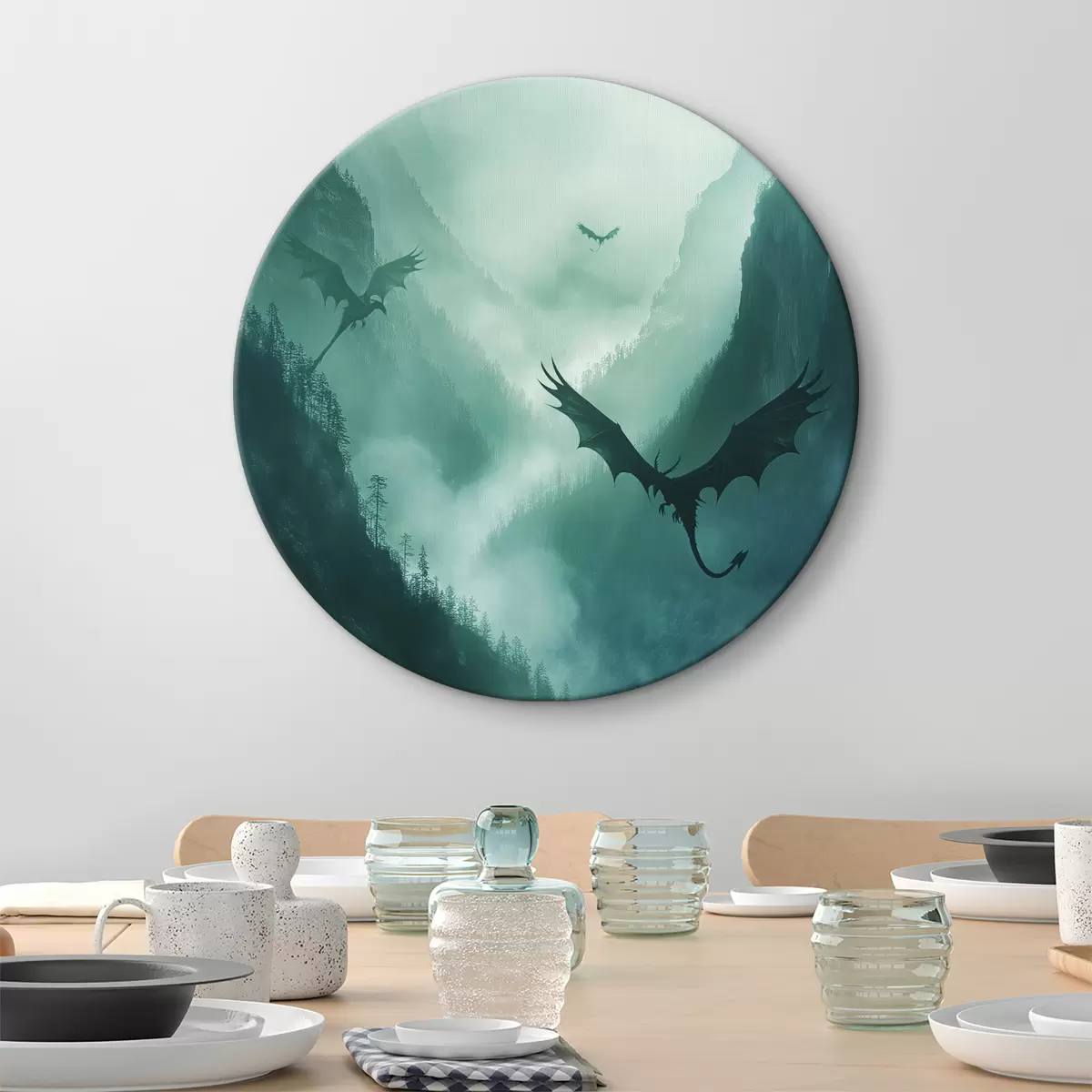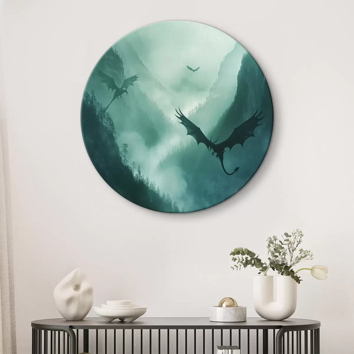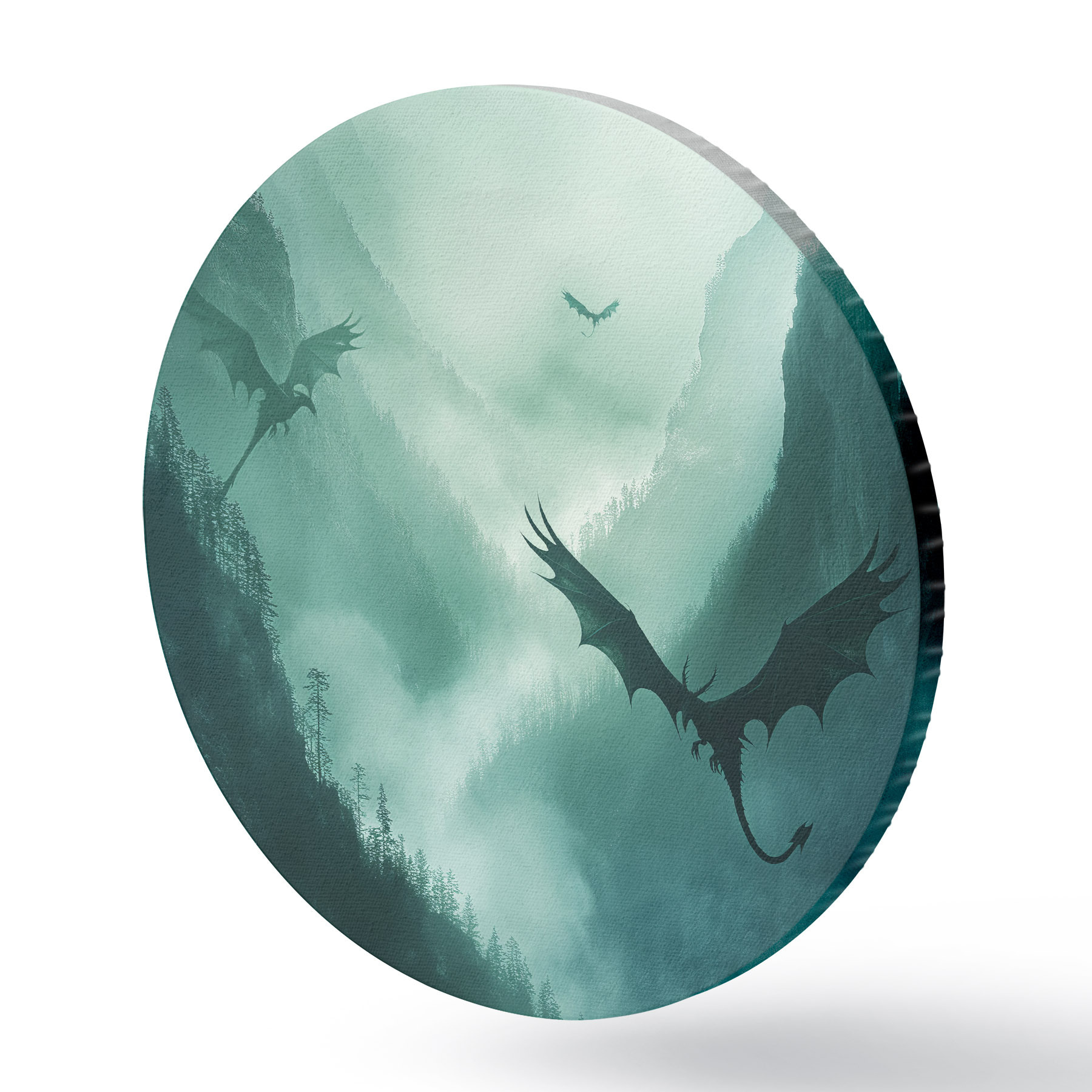 Cuadros redondos Dos dragones, verdes r40011
