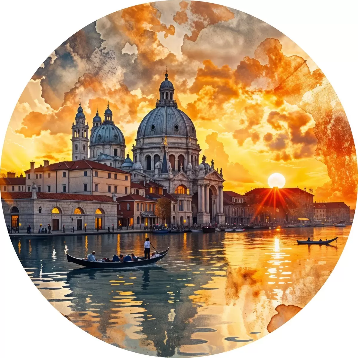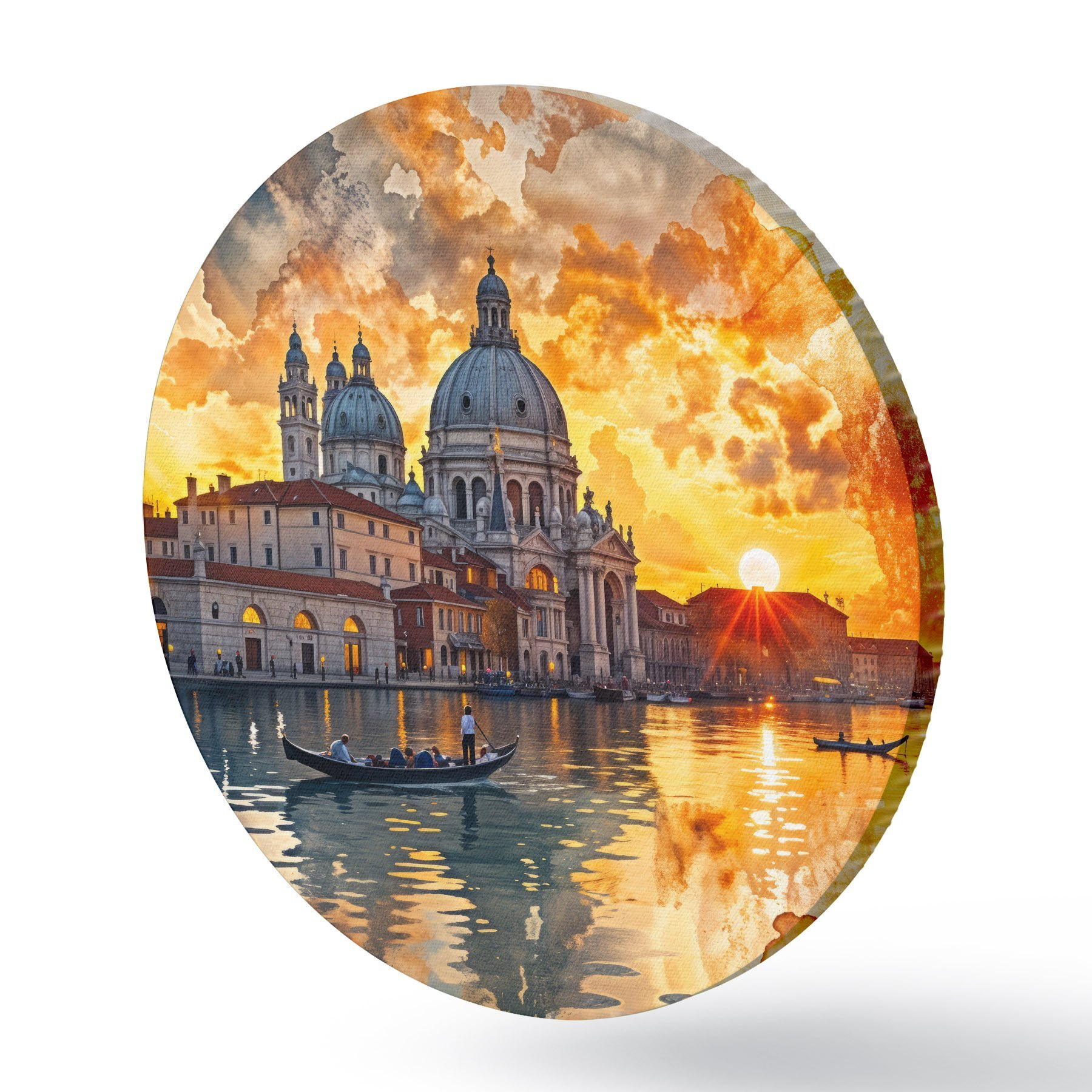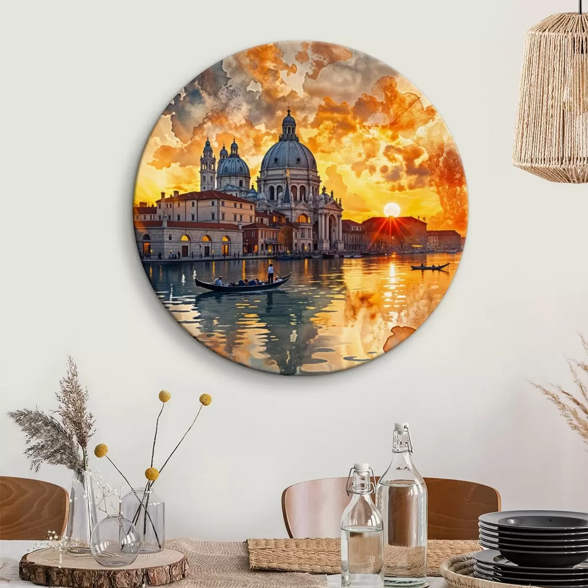 Cuadros redondos Una puesta de sol colorida y dramática sobre el Gran Canal de Venecia, Italia, arte de acuarela r40027
