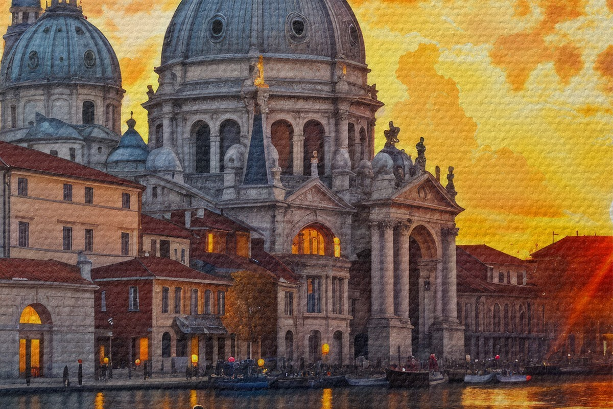 Foto Una puesta de sol colorida y dramática sobre el Gran Canal de Venecia, Italia, arte de acuarela Nr r40027