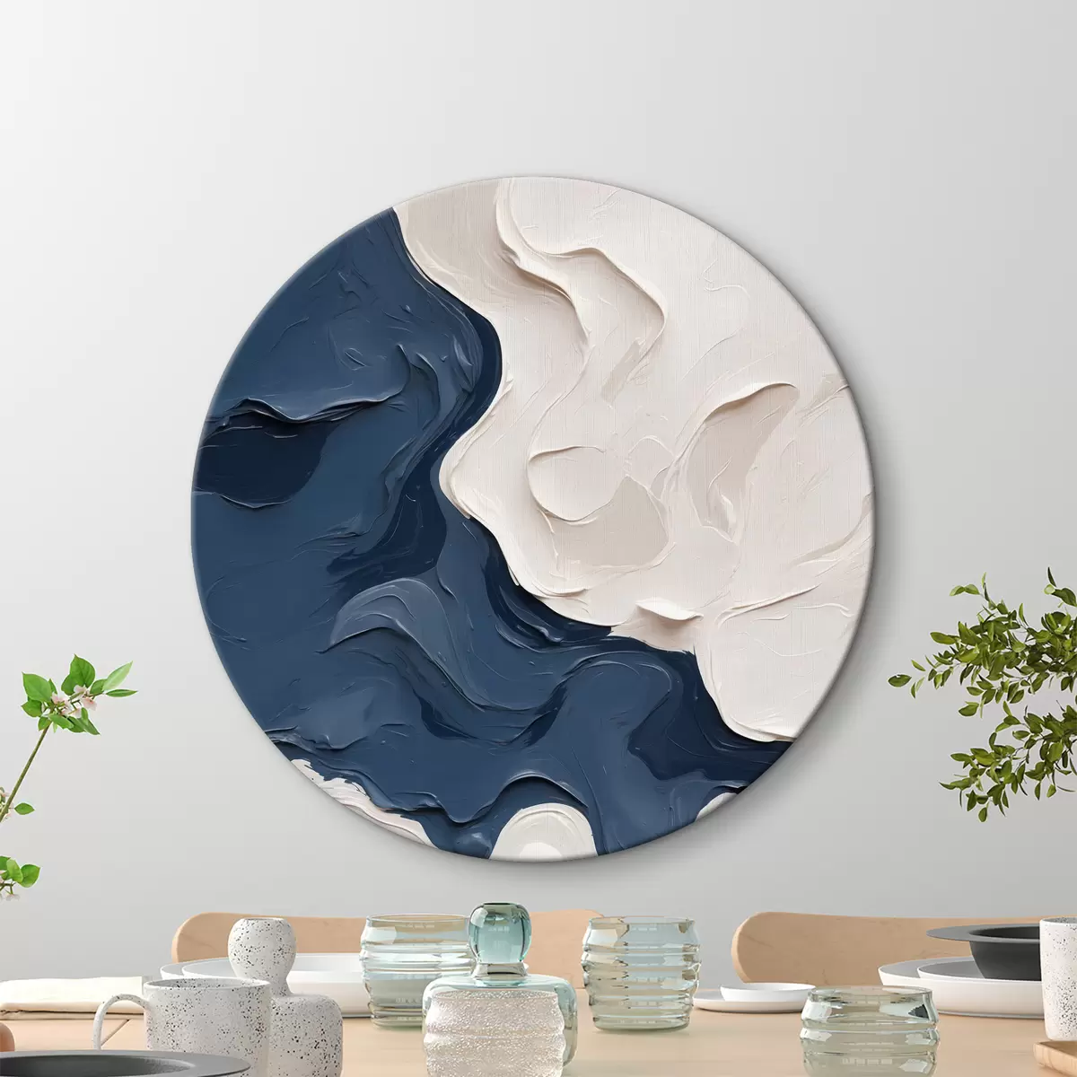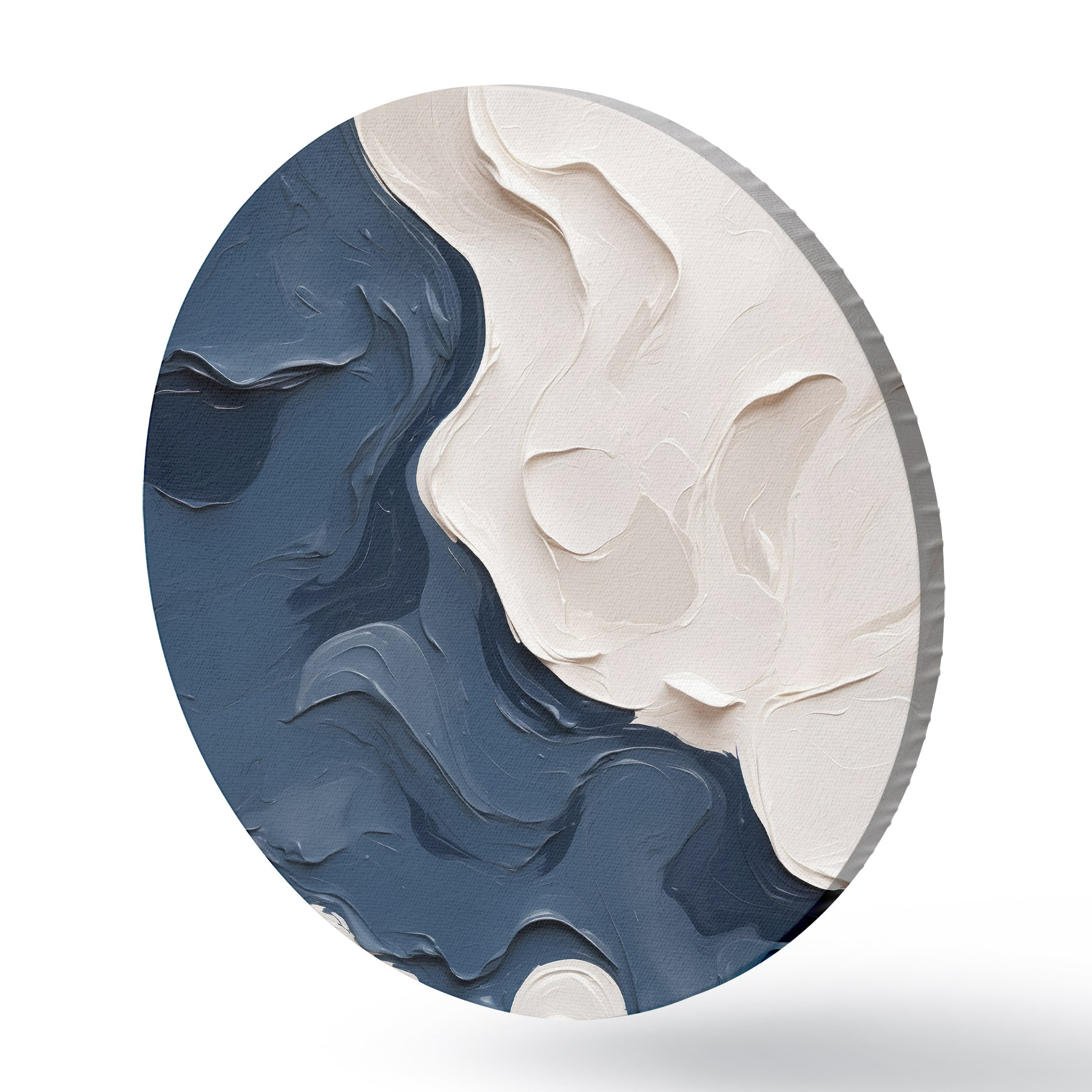 Cuadros redondos Abstracción con colores de óleo blanco y azul r40058
